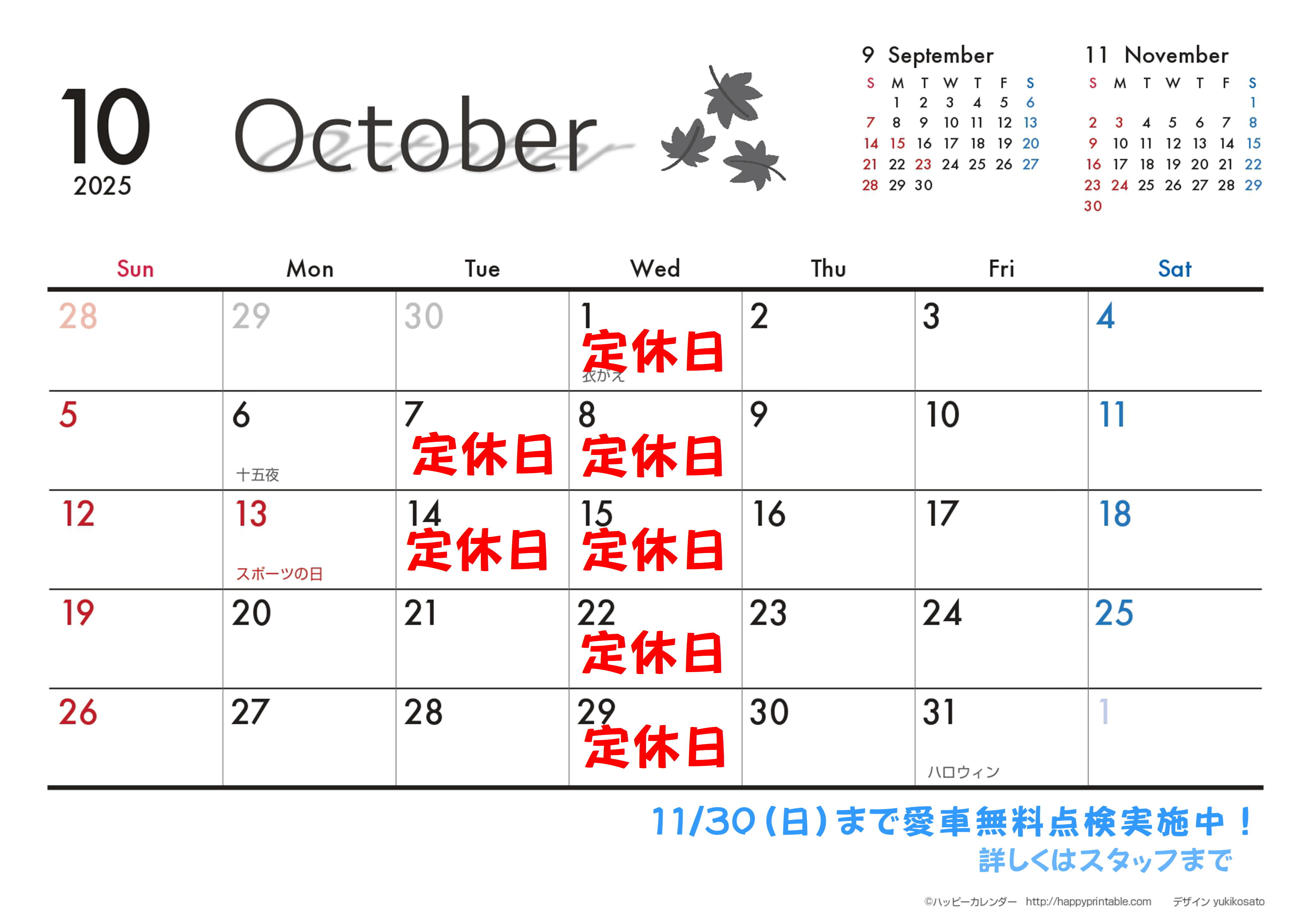 10月カレンダー♪