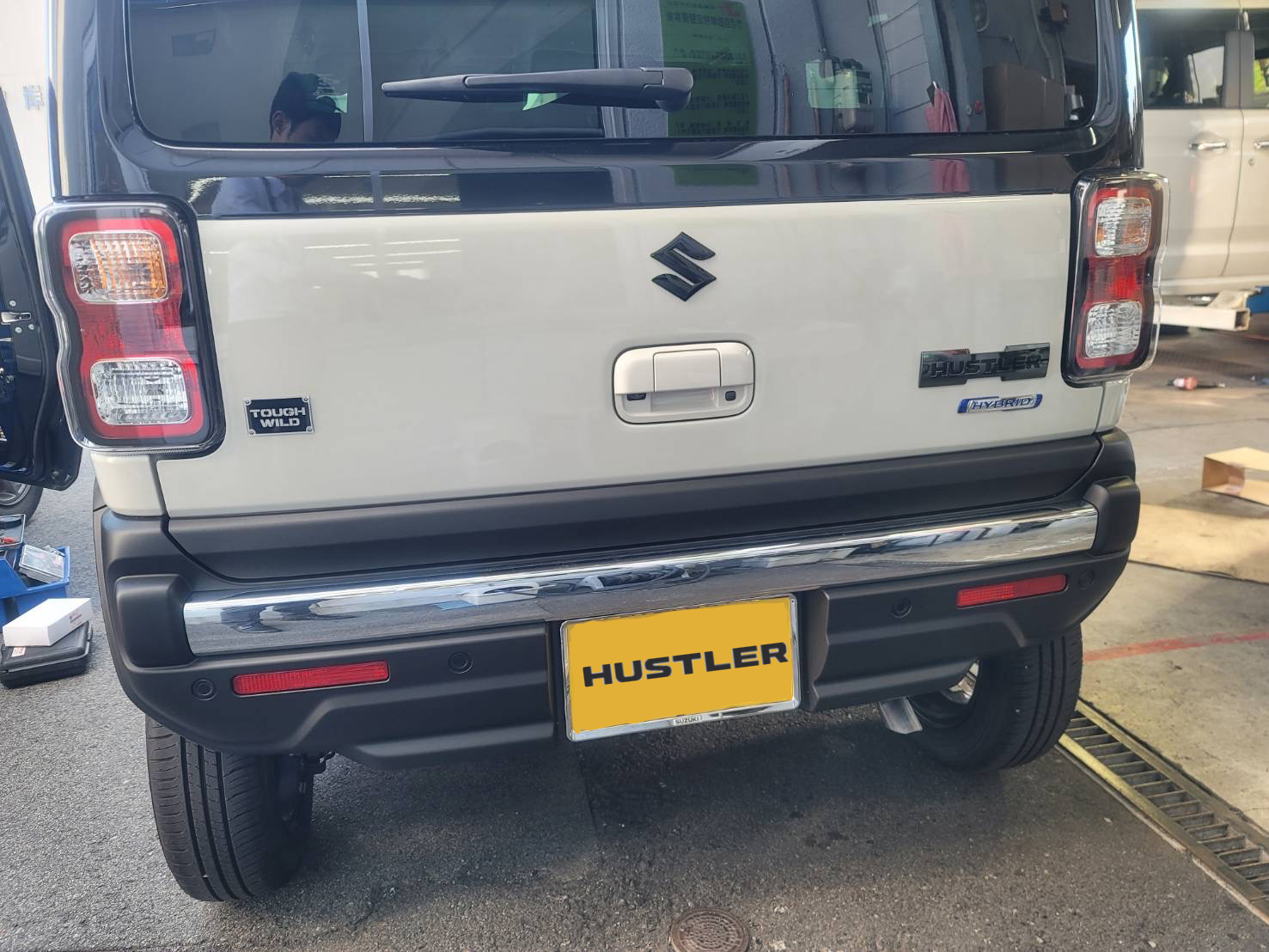 バックドア左下のタフワイルド(TOUGH WILD)のエンブレムは