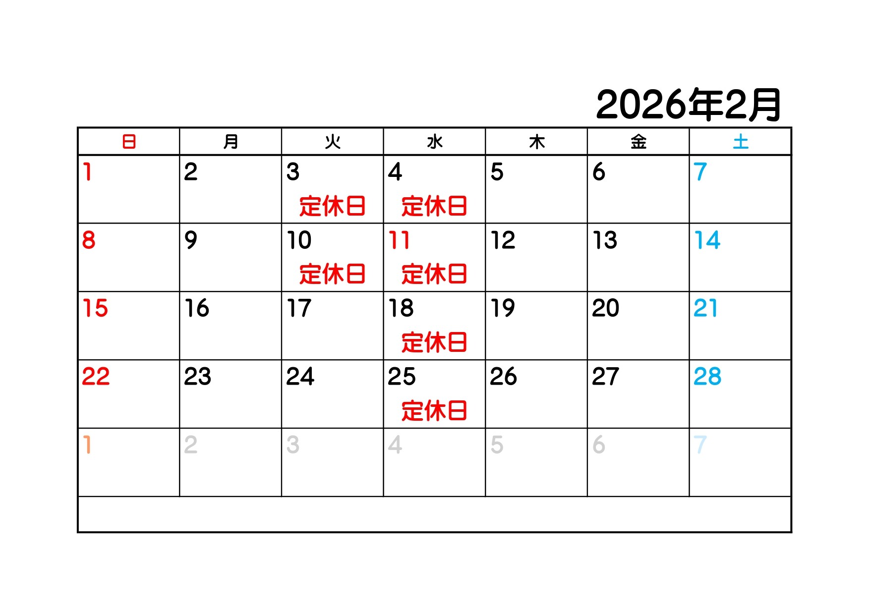 2月カレンダー