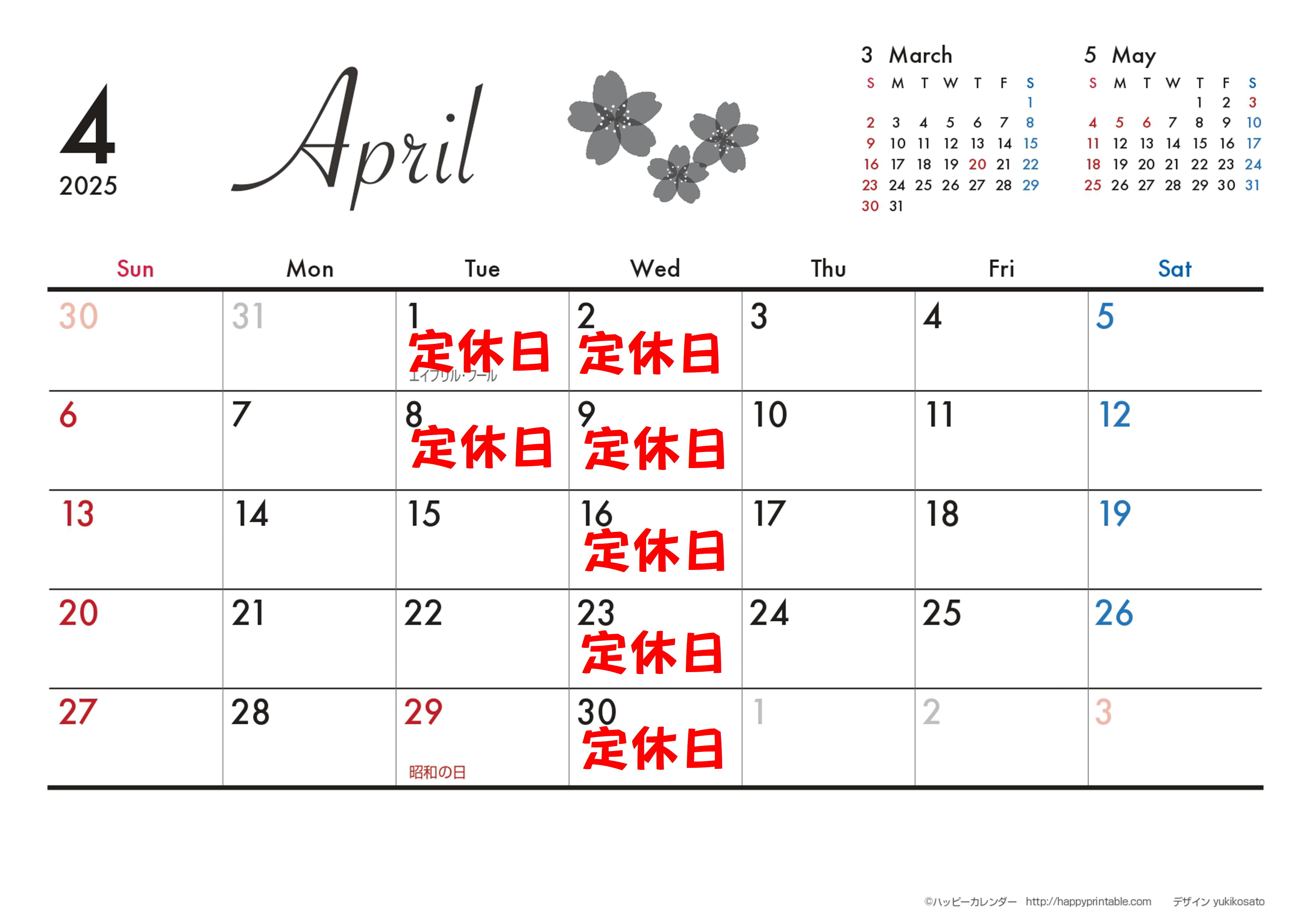 ♪ 4月カレンダー ♪