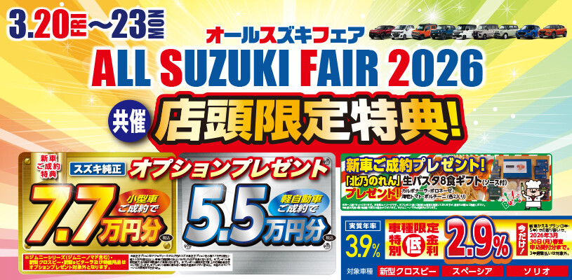 今週末は「ALL SUZUKI FAIR 2026」開催します!