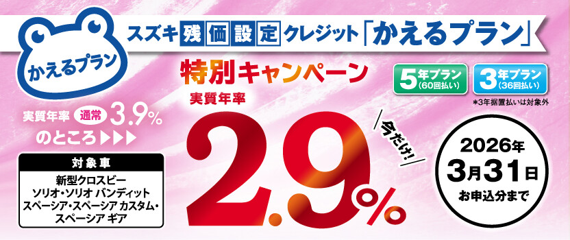 スズキ残価設定クレジット「かえるプラン」特別手数料率2.9%キャンペーン
