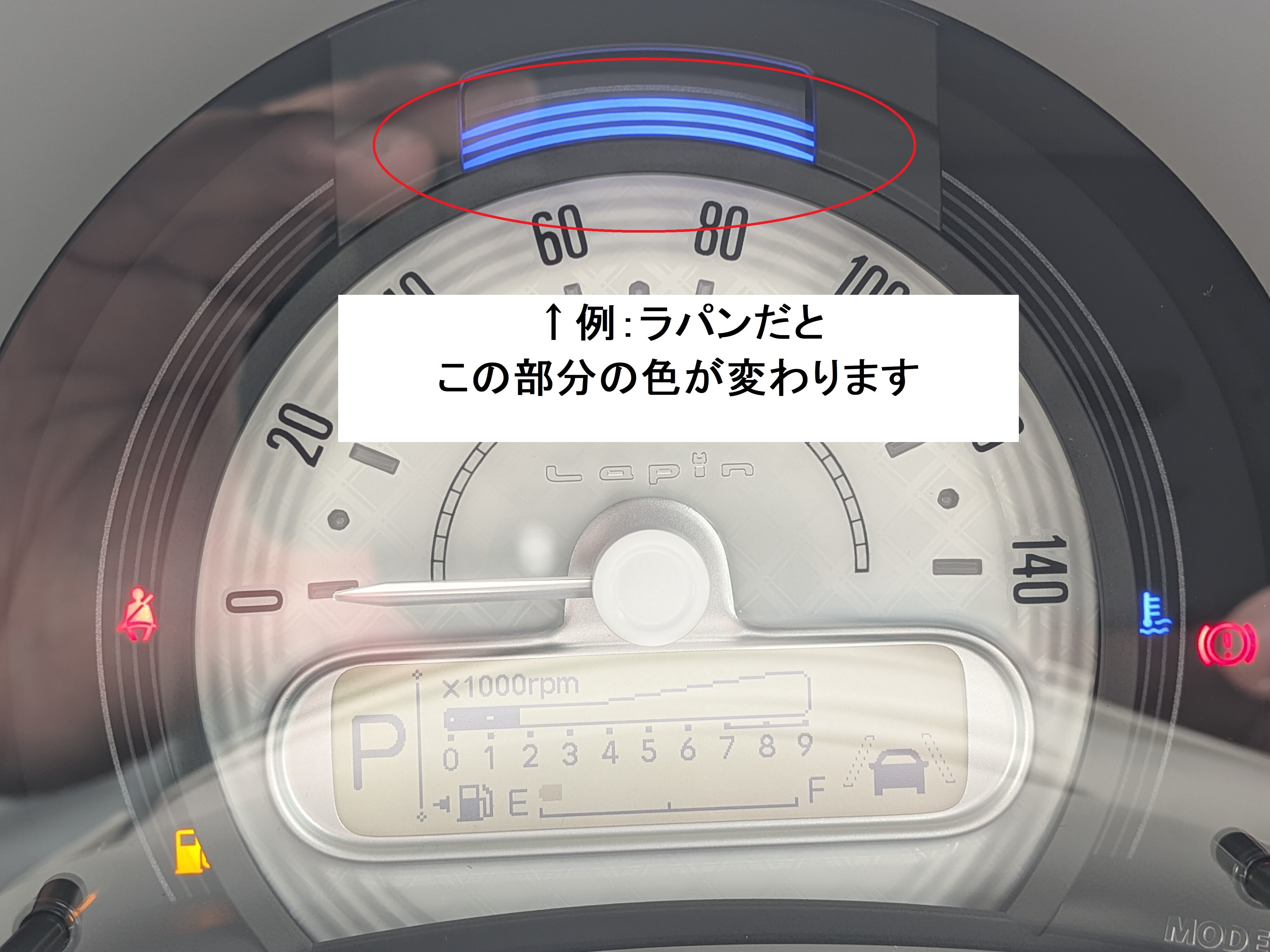 エンジン停止時に、スピードメーターにある
