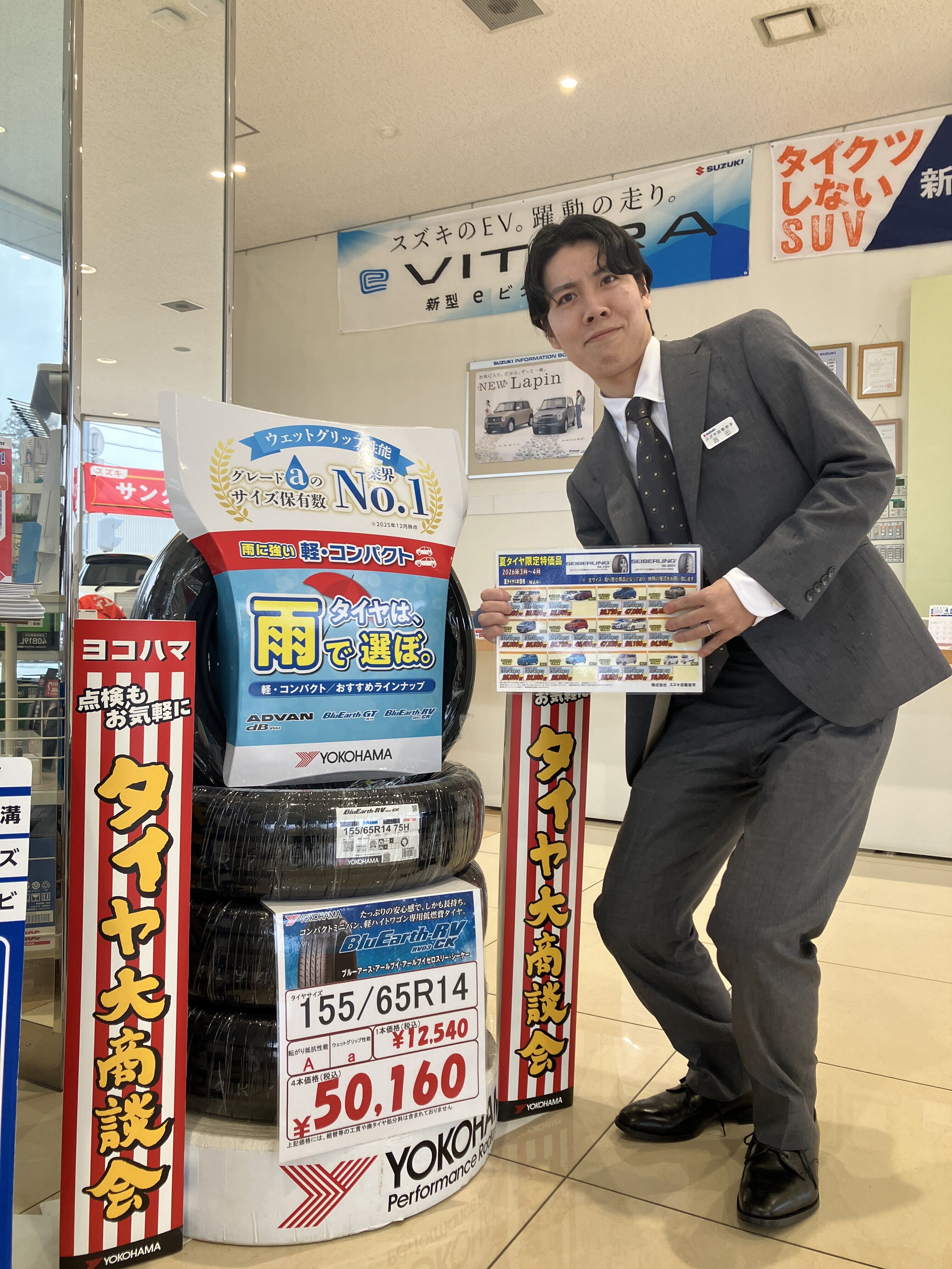 その他 2026.03.26 タイヤ交換お早めに!! 皆様いかがお過ごしでしょうか 私は息子が生まれてから1か月たち可愛すぎて写真のフォルダが息子でうまり始めました 現在も育児奮闘中です! ところで皆様タイヤ交換の方はもうされましたか⁉ 現在タイヤ交換受付しております! タイヤ交換まだしてないよという方ご連絡のほどお待ちしております!! スズキアリーナ花巻中央 0198-23-1600