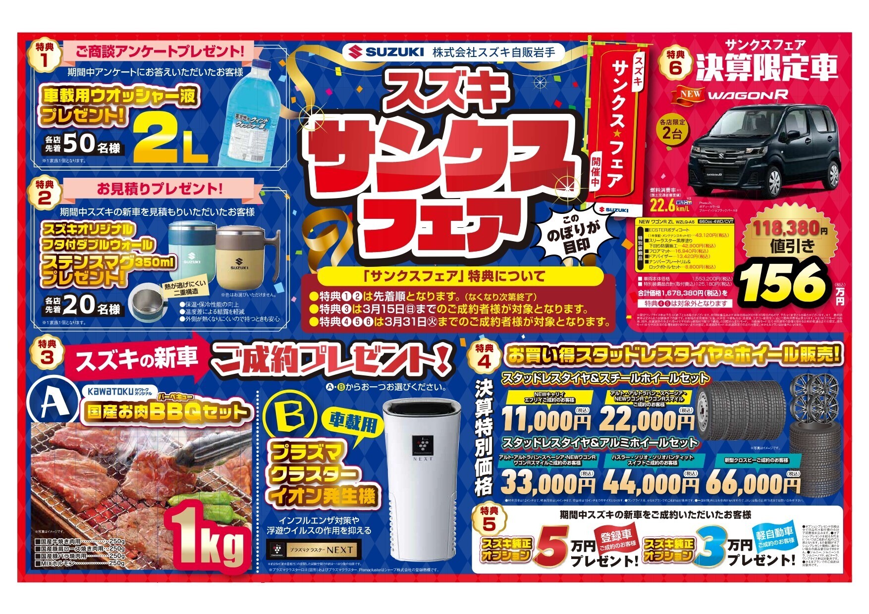 期間中にスズキの新車(軽自動車・登録車)ご成約いただいた方全員に、