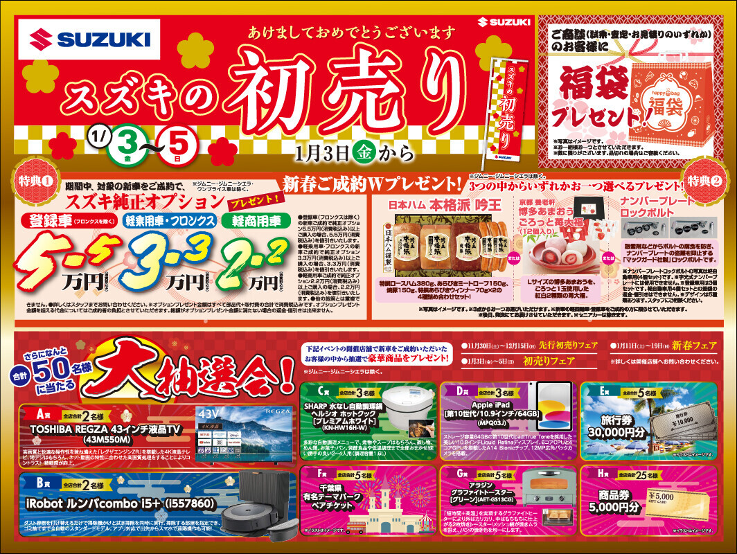 【1/3(金)~5(日)】スズキの初売り開催!
