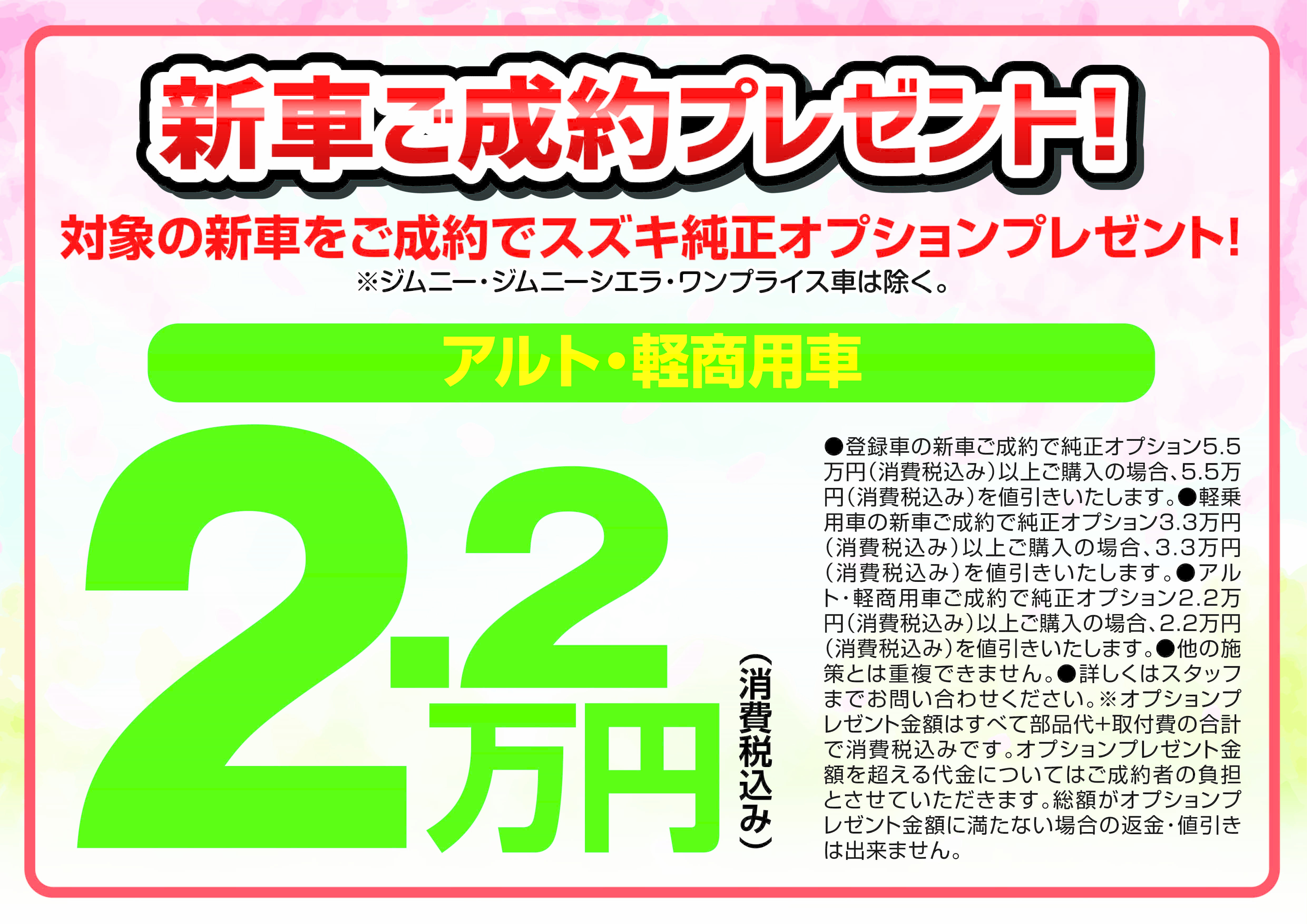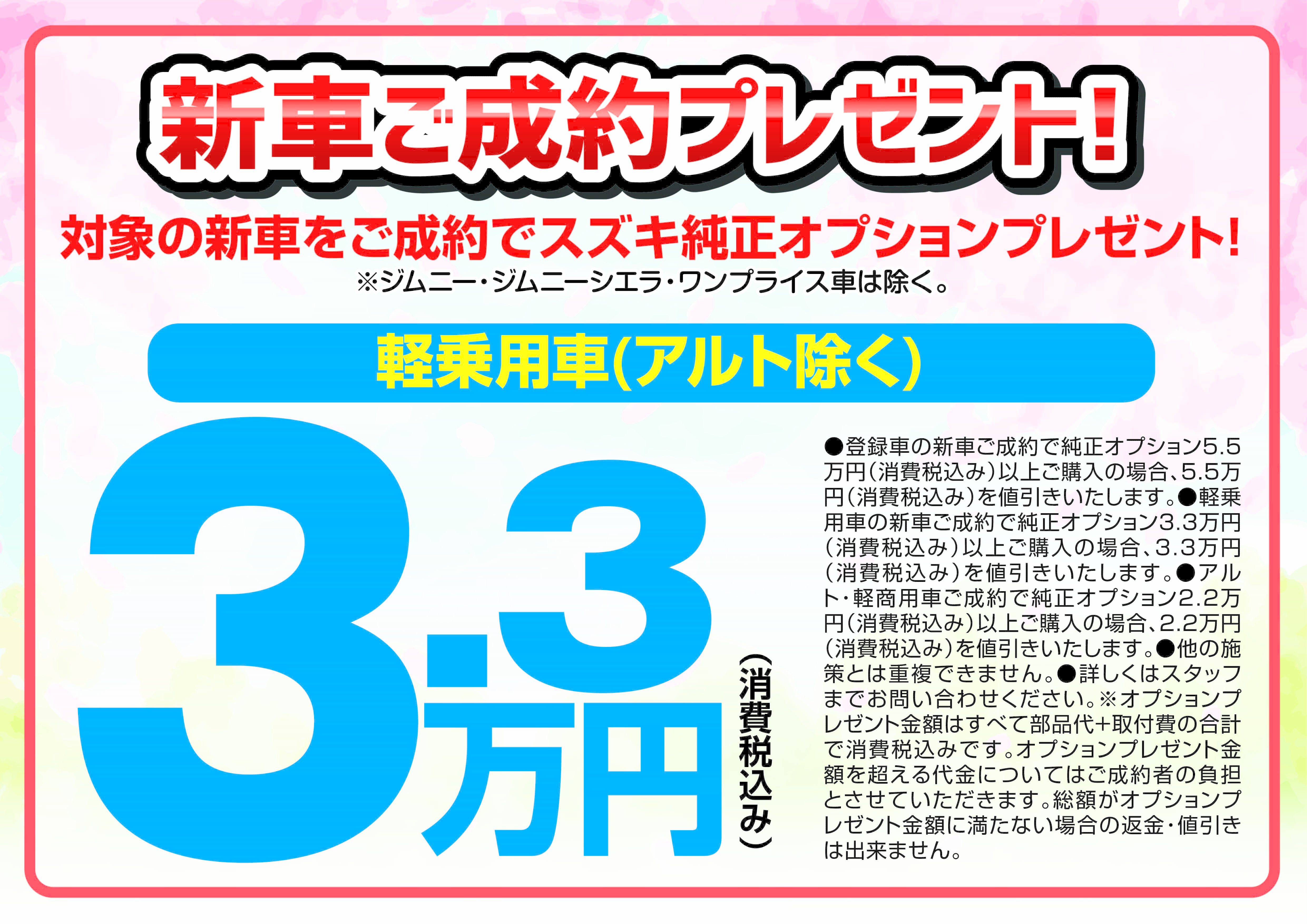 ※ジムニー、ジムニーシエラ、ワンプライス車は除きます。