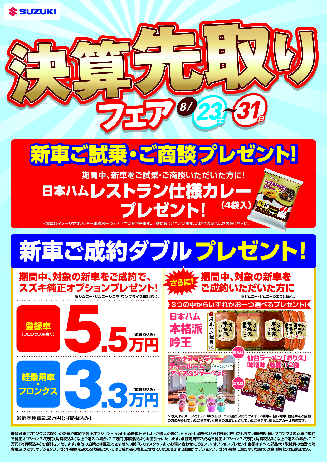 お盆明けたら決算先取りフェア開催!