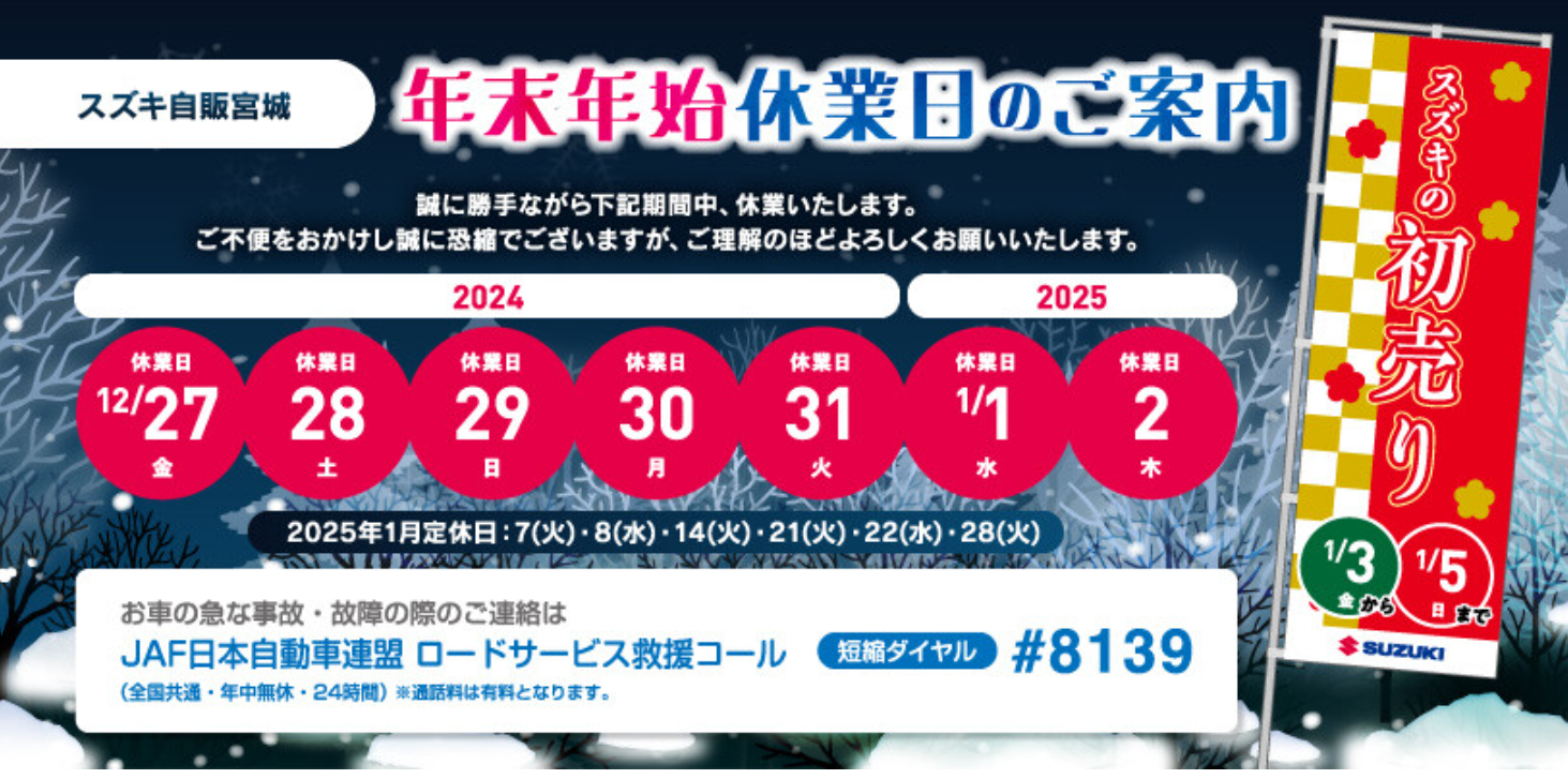 年末年始休業のお知らせ