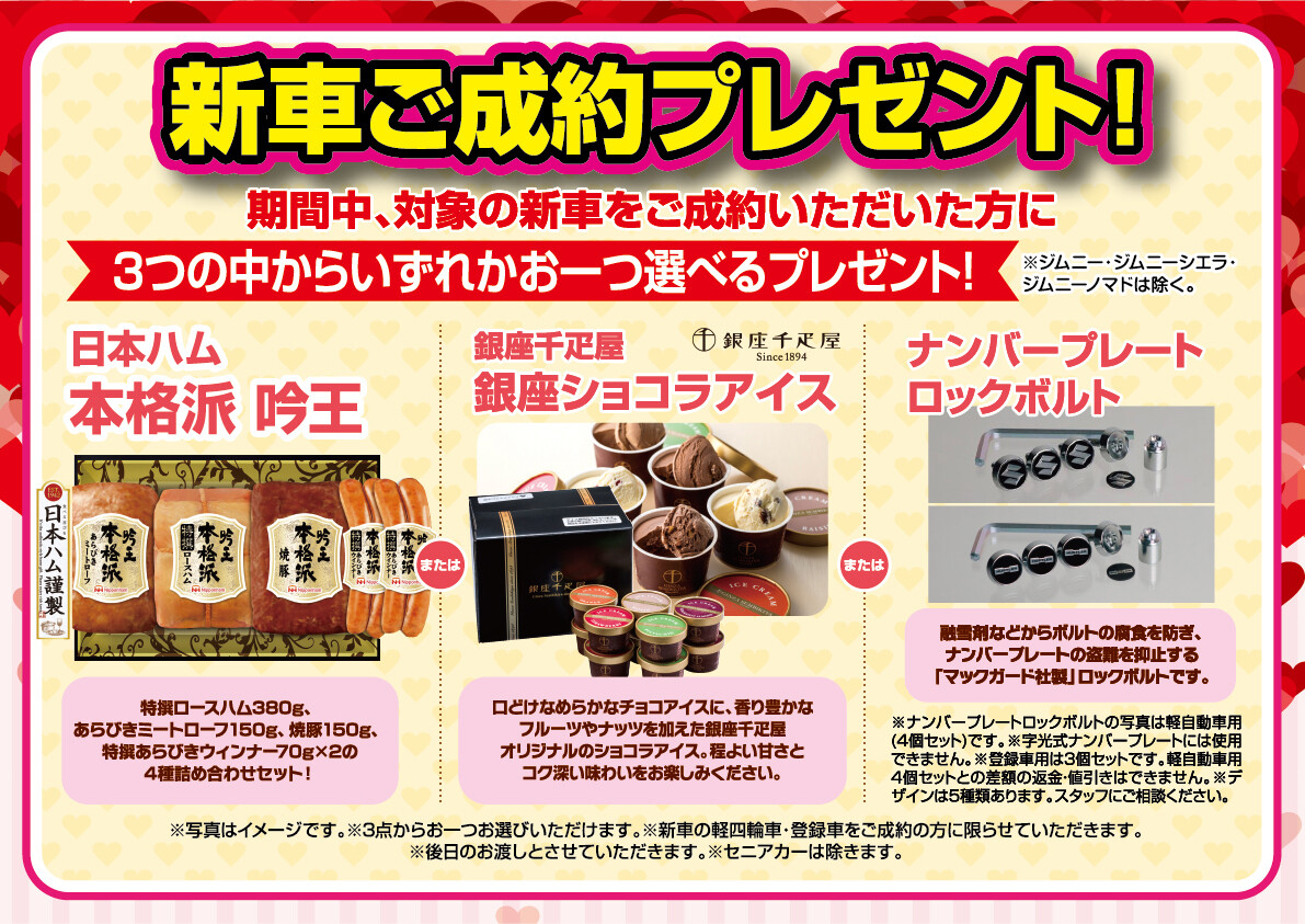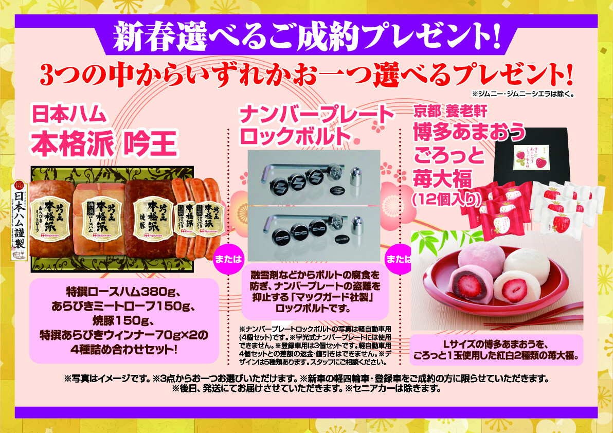 新車ご成約で3つの中から