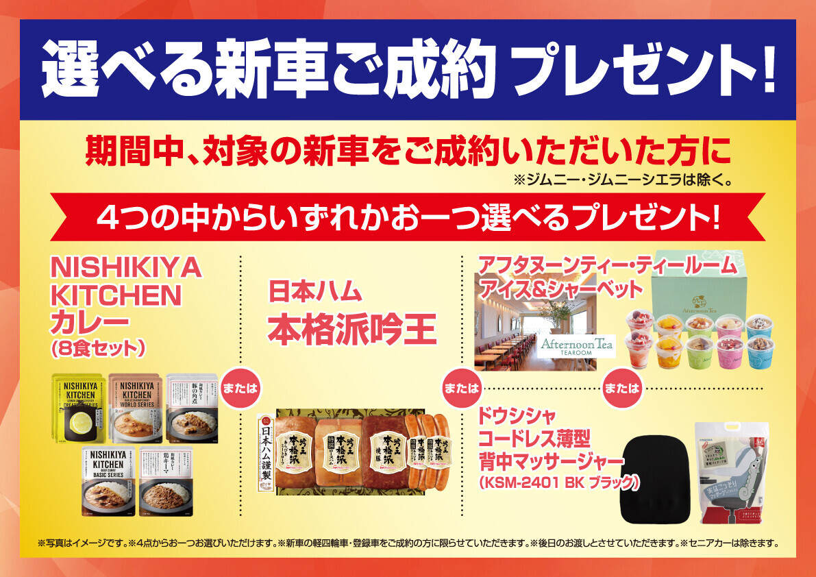 期間中、対象の新車をご成約頂いた方に