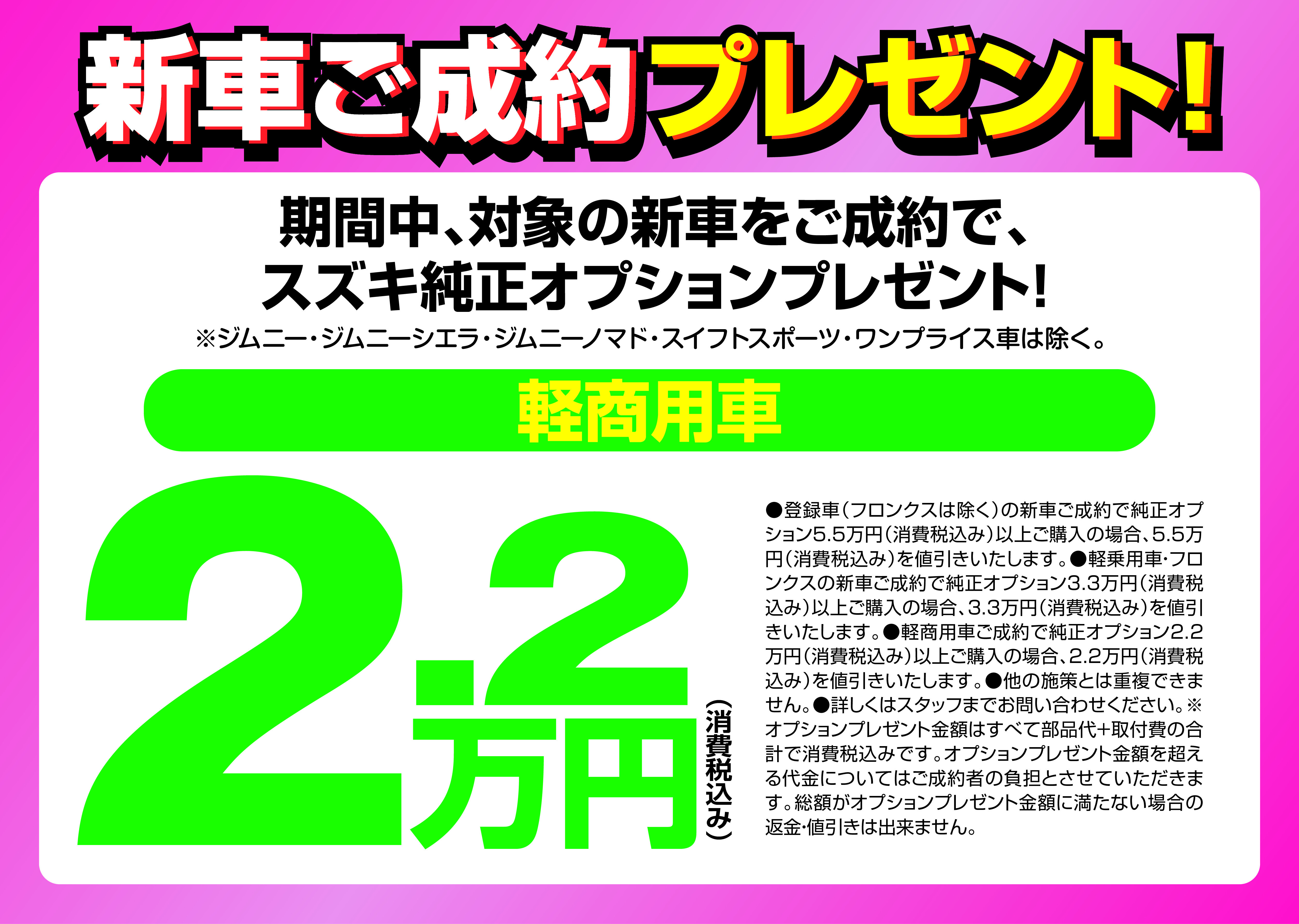 ※ジムニー、ジムニーシエラ、ワンプライス車は対象外です