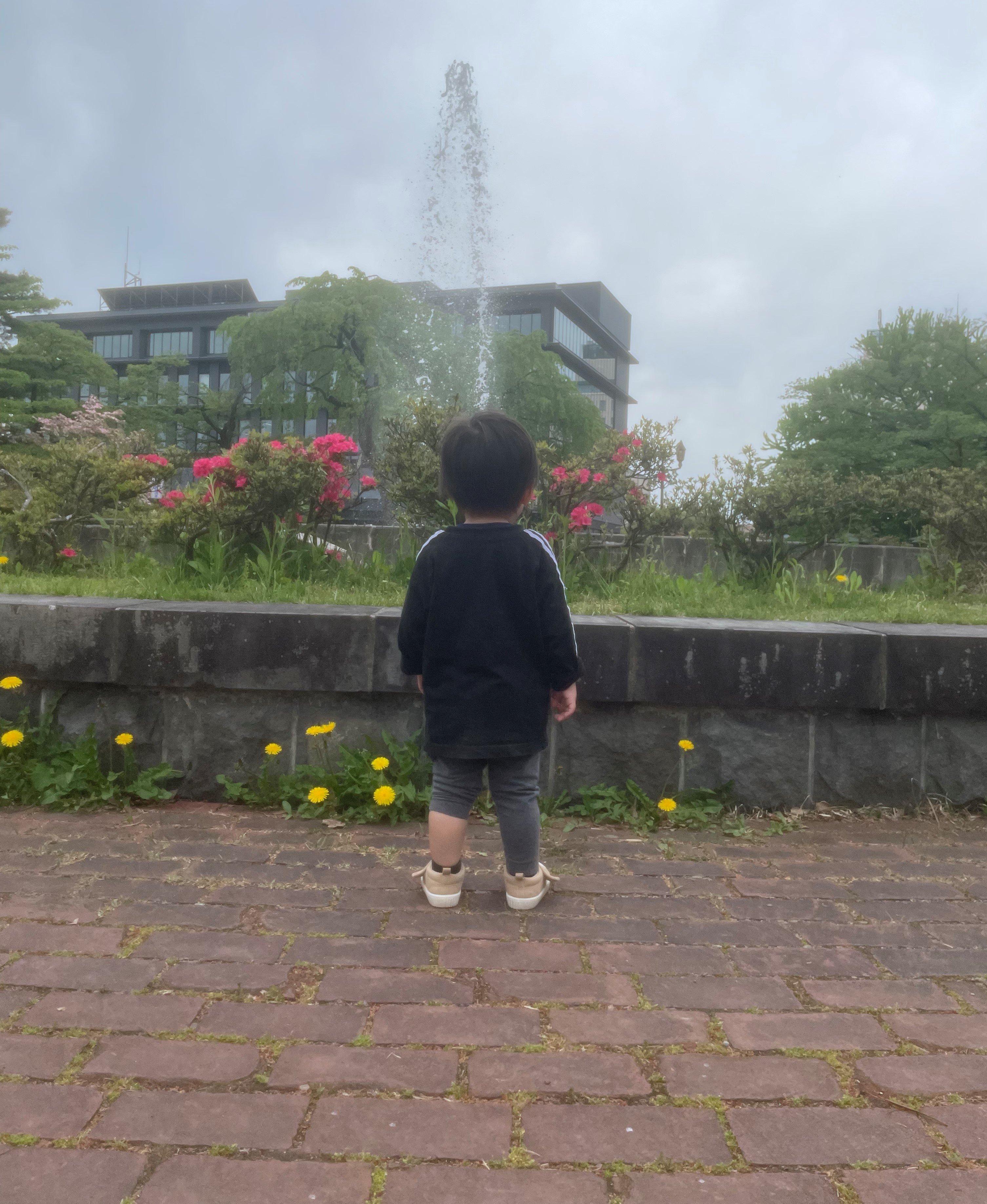 噴水をみてたそがれているお子