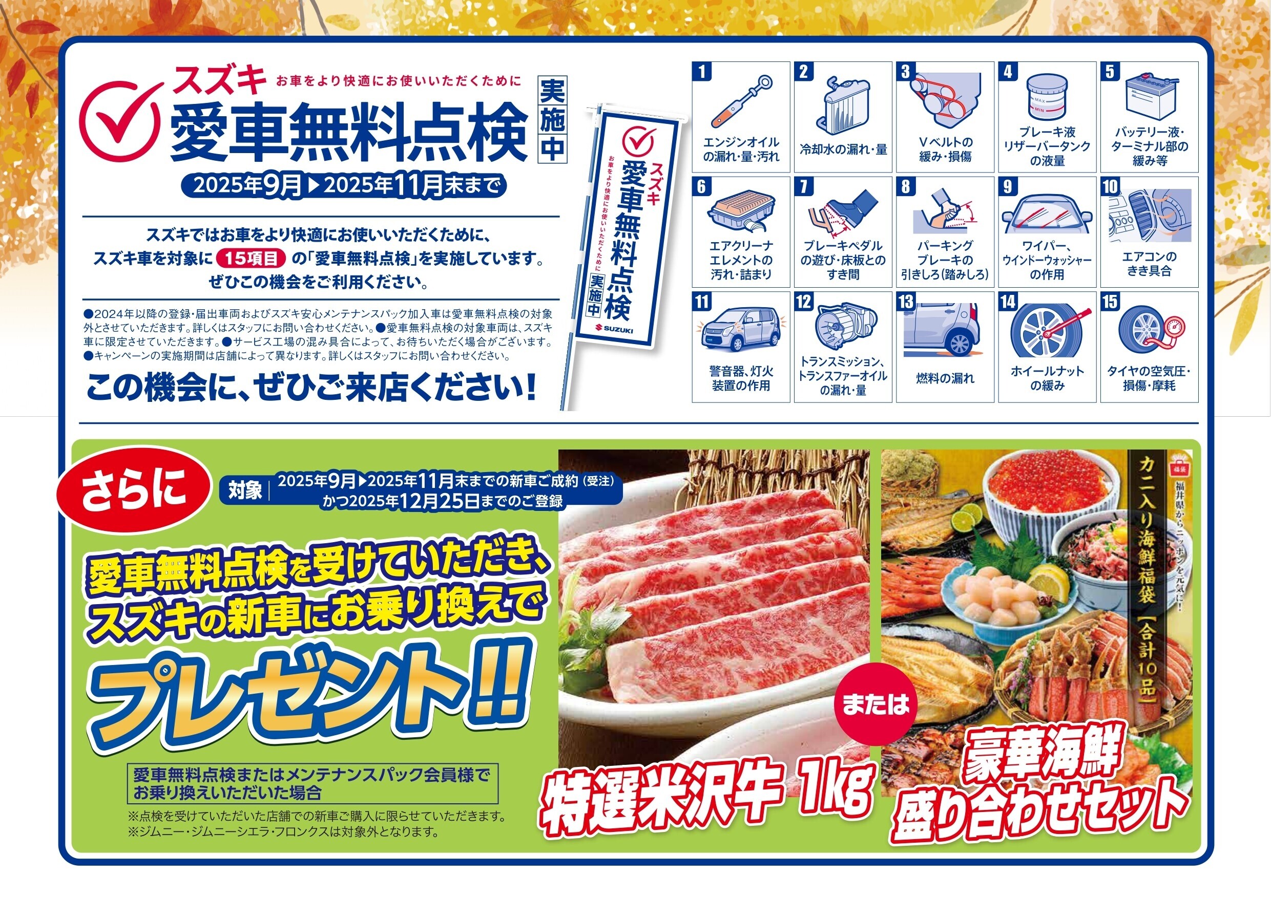 ①新車ご成約特典