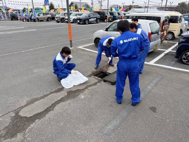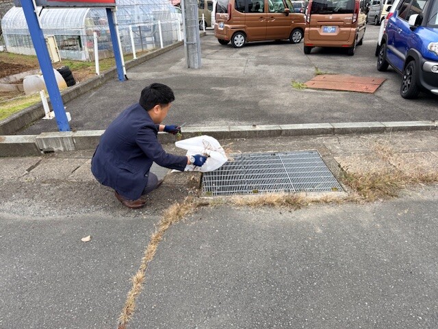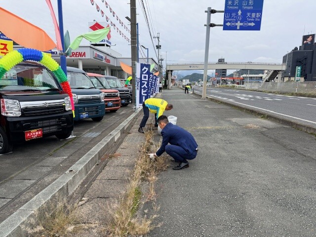 店舗まわりの清掃&草むしりを行いました