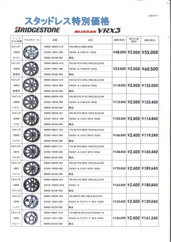 こちらはタイヤとホイール、工賃が含まれております。