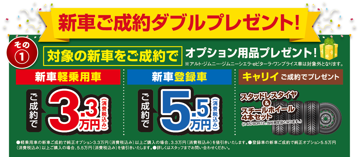 対象の新車をご成約で