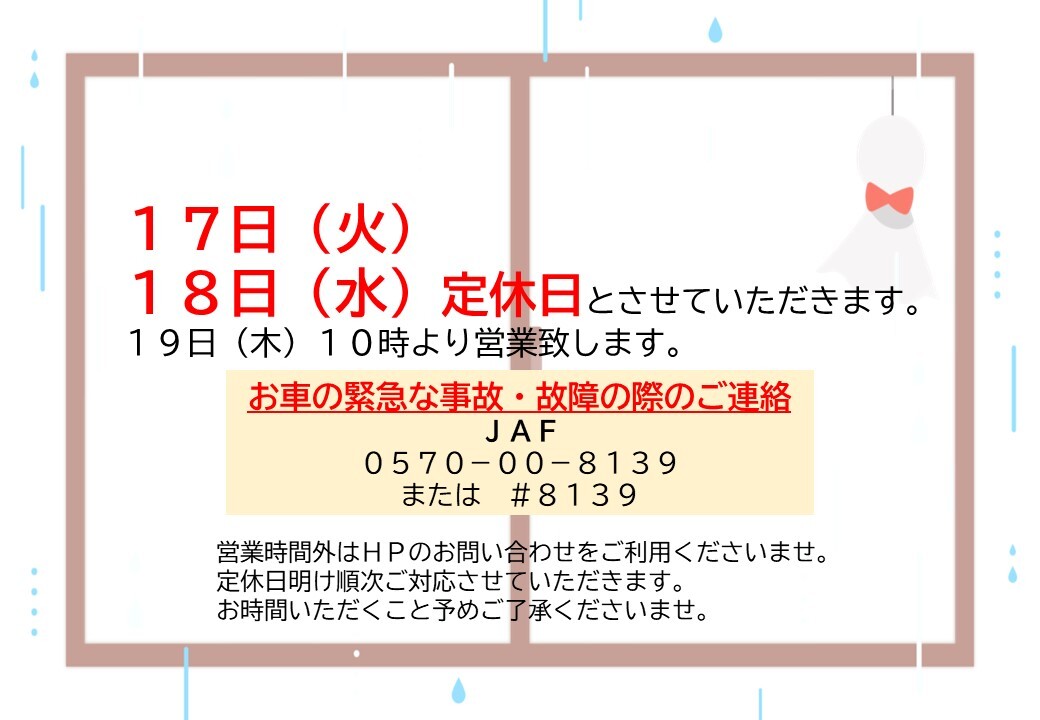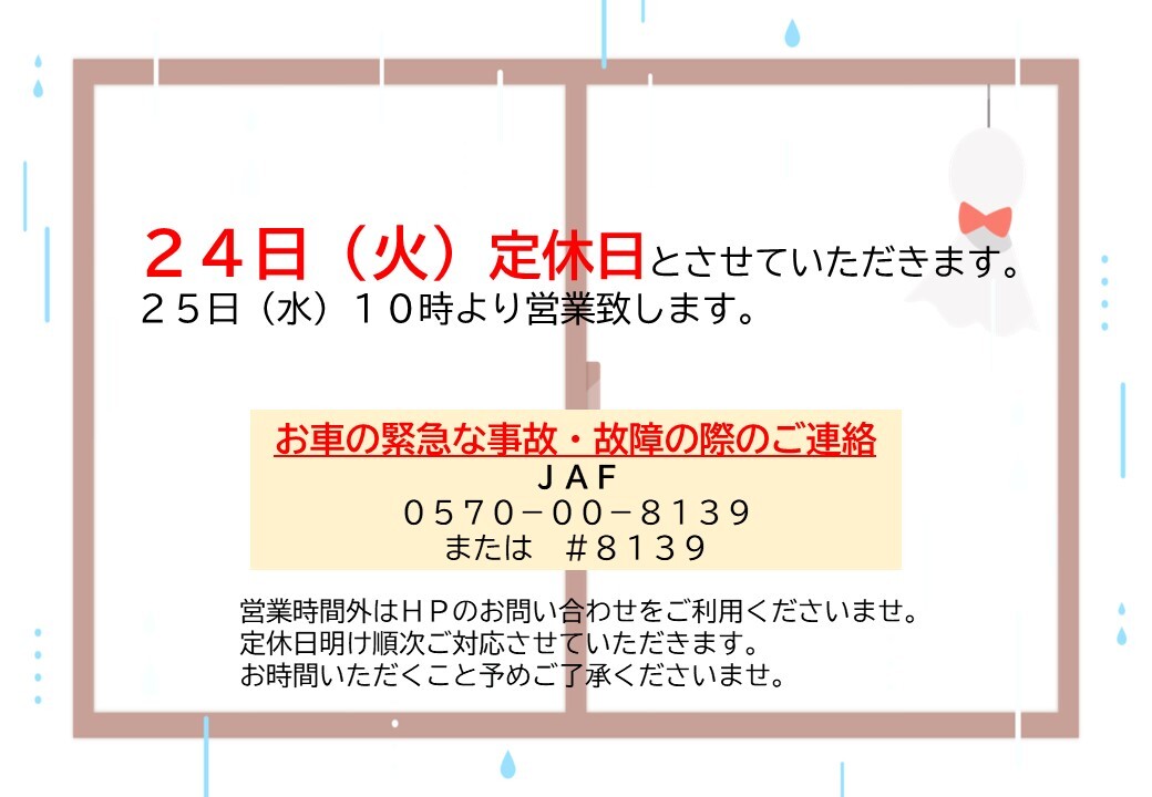 定休日のご案内