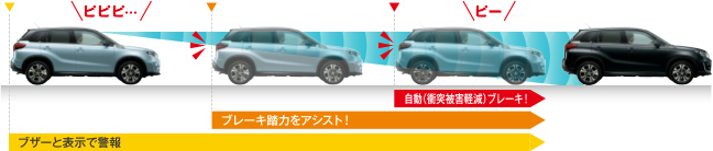 万が一衝突するかも!!となった時に、自動で強いブレーキをかけてくれます。