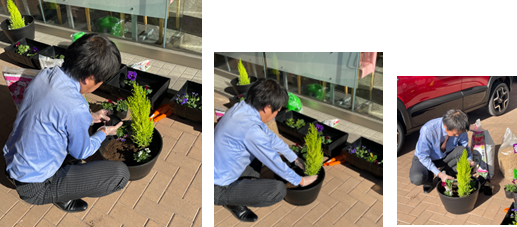 スタッフ全員で協力して無事花を植え終わりました!拠点に輝きが増しましたね!