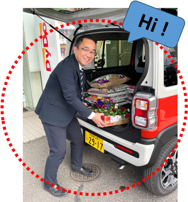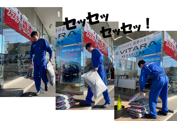 さすが鹿島工場長!重い肥料も軽々ですね