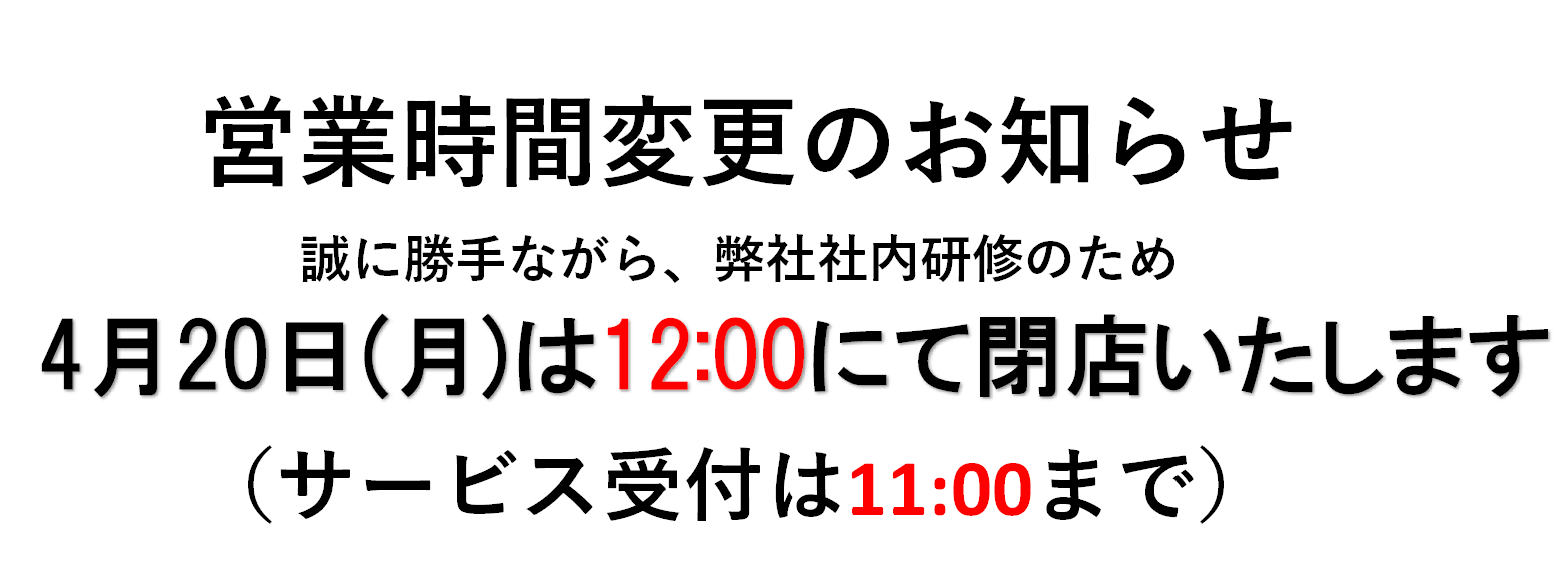 4月20日(月)営業時間変更のお知らせ