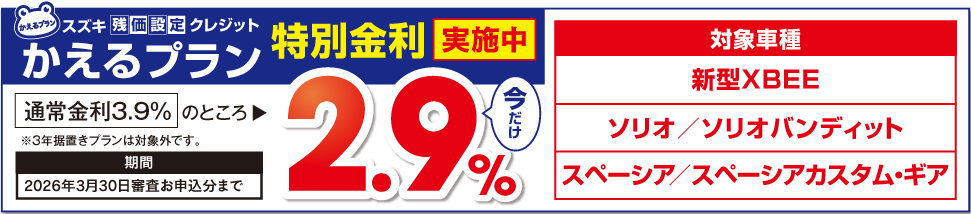 かえるプランは通常年率3.9%ですが、今だけなんと2.9%でご案内しております。