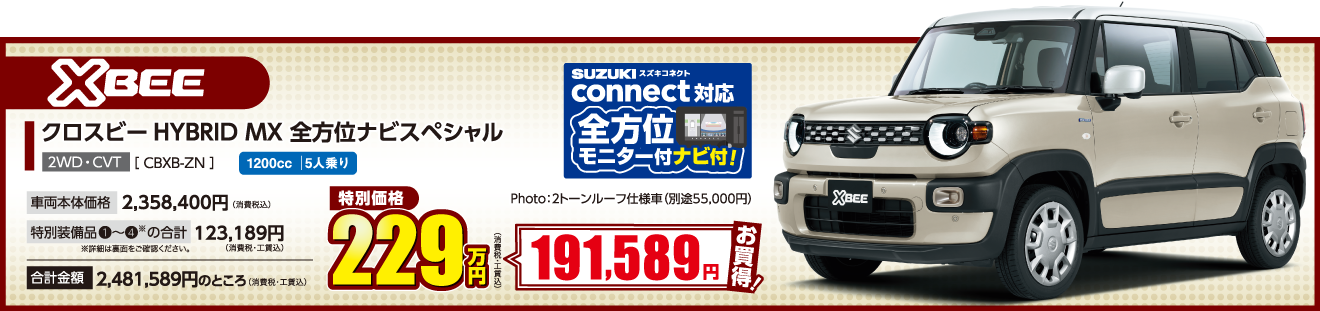 ※ワンプライス車の価格は、オプションプレゼント値引分が含まれた金額です。