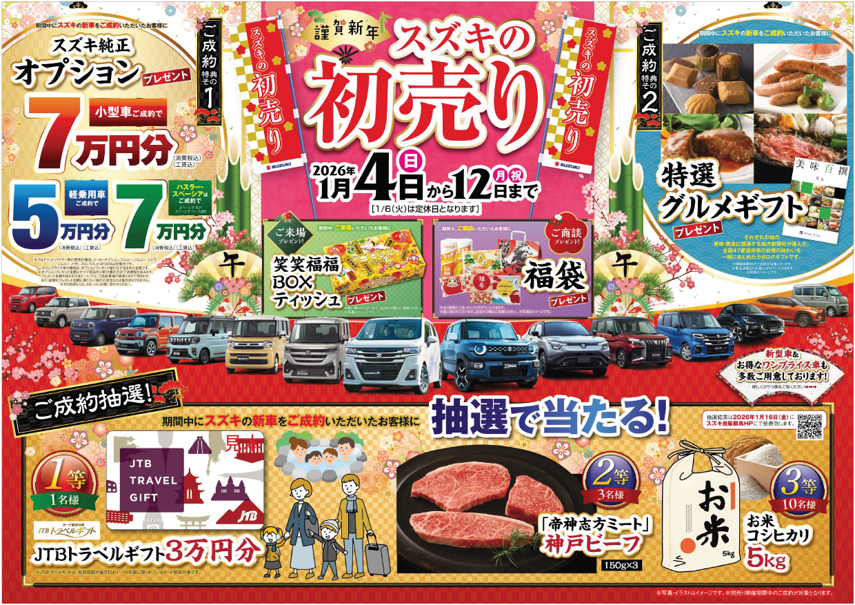 明けましておめでとうございます!!スズキの新春初売りやってます!!