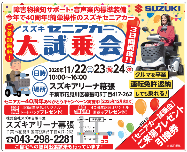 9月26日(金)と27日(土)にアリーナ成田にてスズキセニアカー大試乗会開催いたします。
