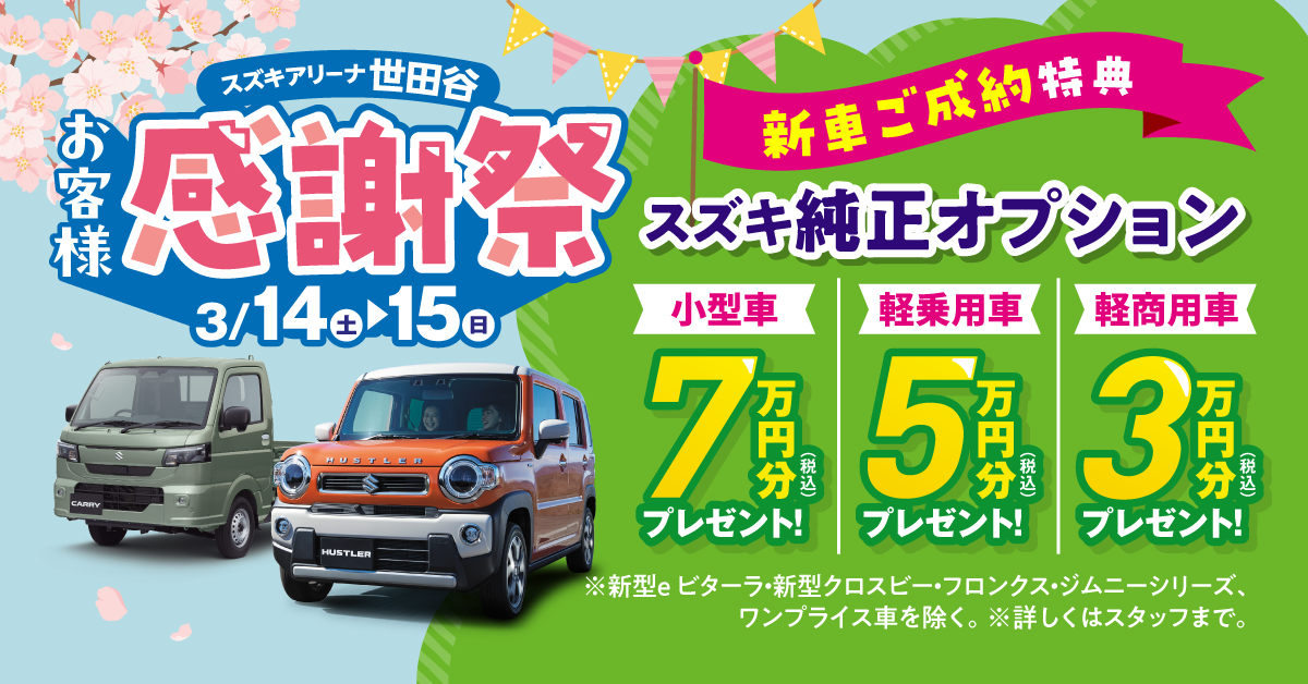 感謝祭期間中に、新車、中古車をご成約いただきますと、