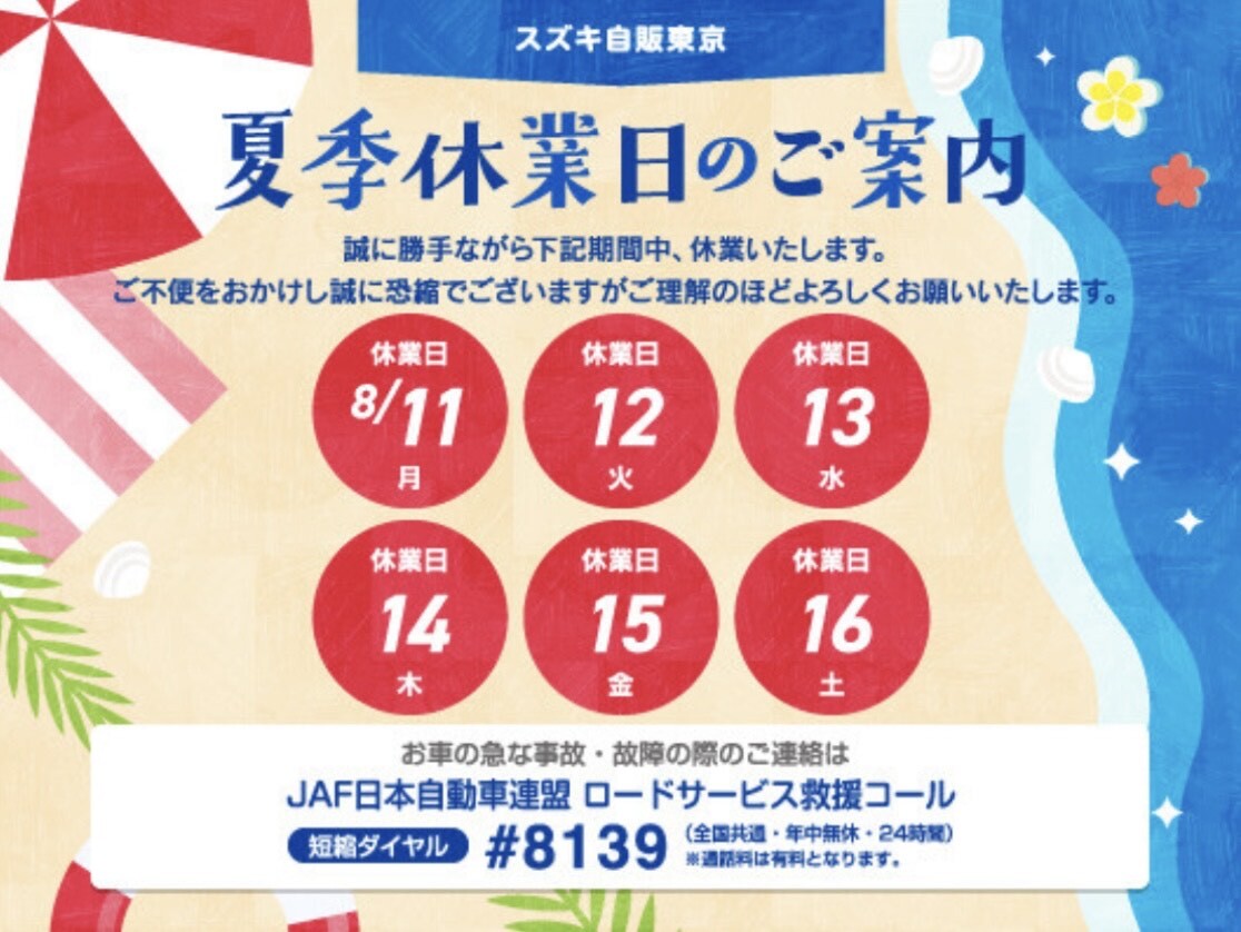 夏季休業のお知らせ