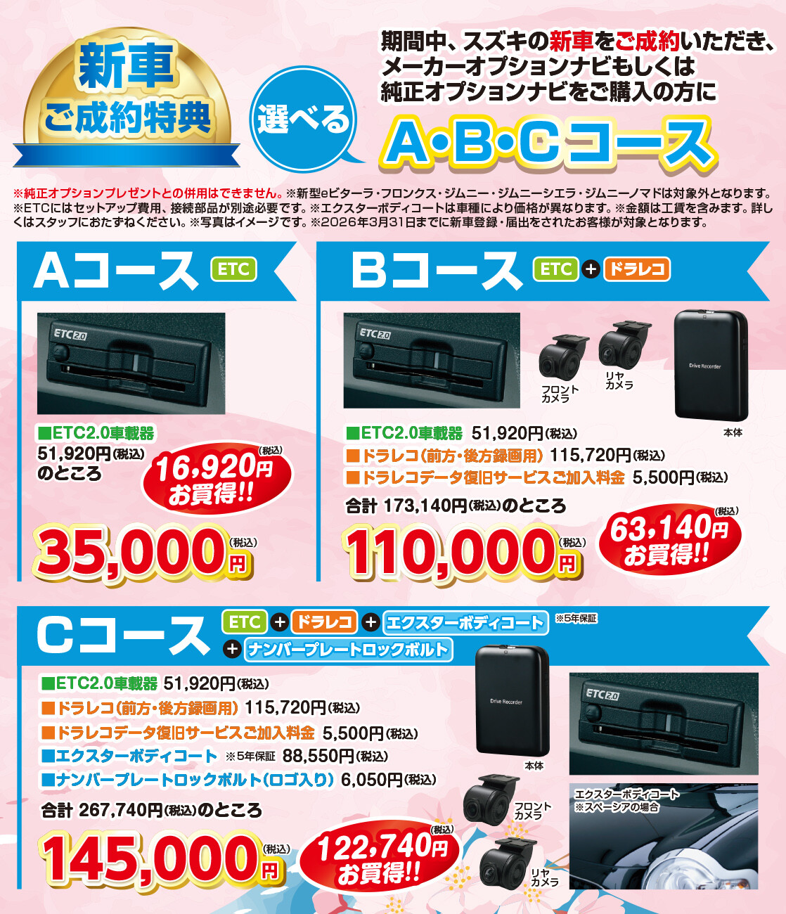 特典①新車ご成約で純正オプションプレゼント!!!