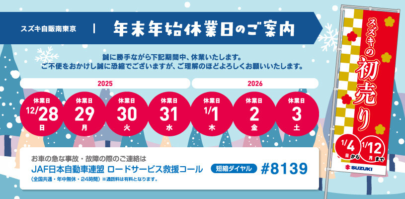 年末年始休業日のご案内
