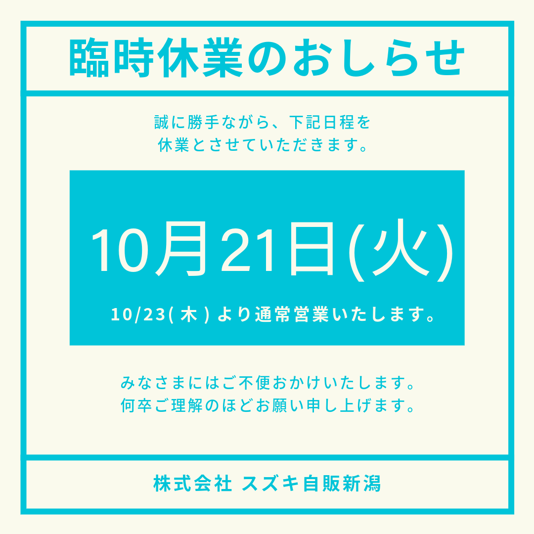 10月21日(火) 臨時休業のお知らせ