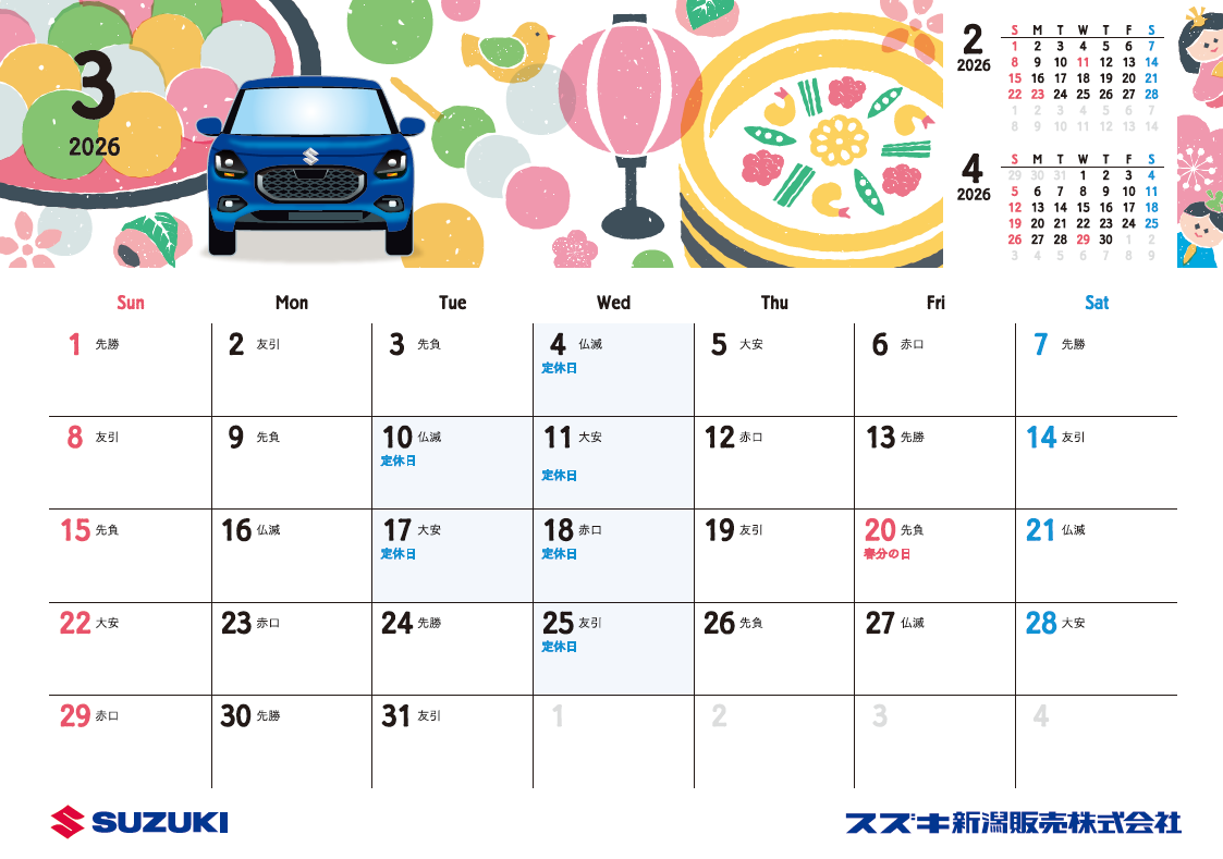 3月定休日のご案内