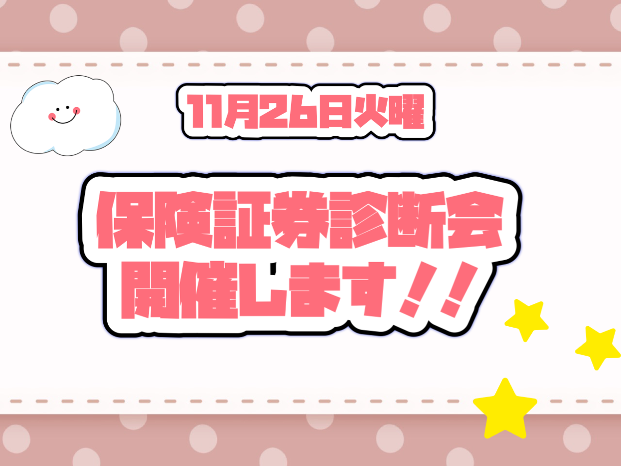 11月26日は?アリーナ富山任意保険証券診断会デーです!