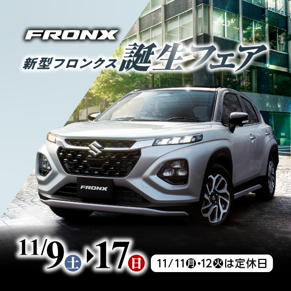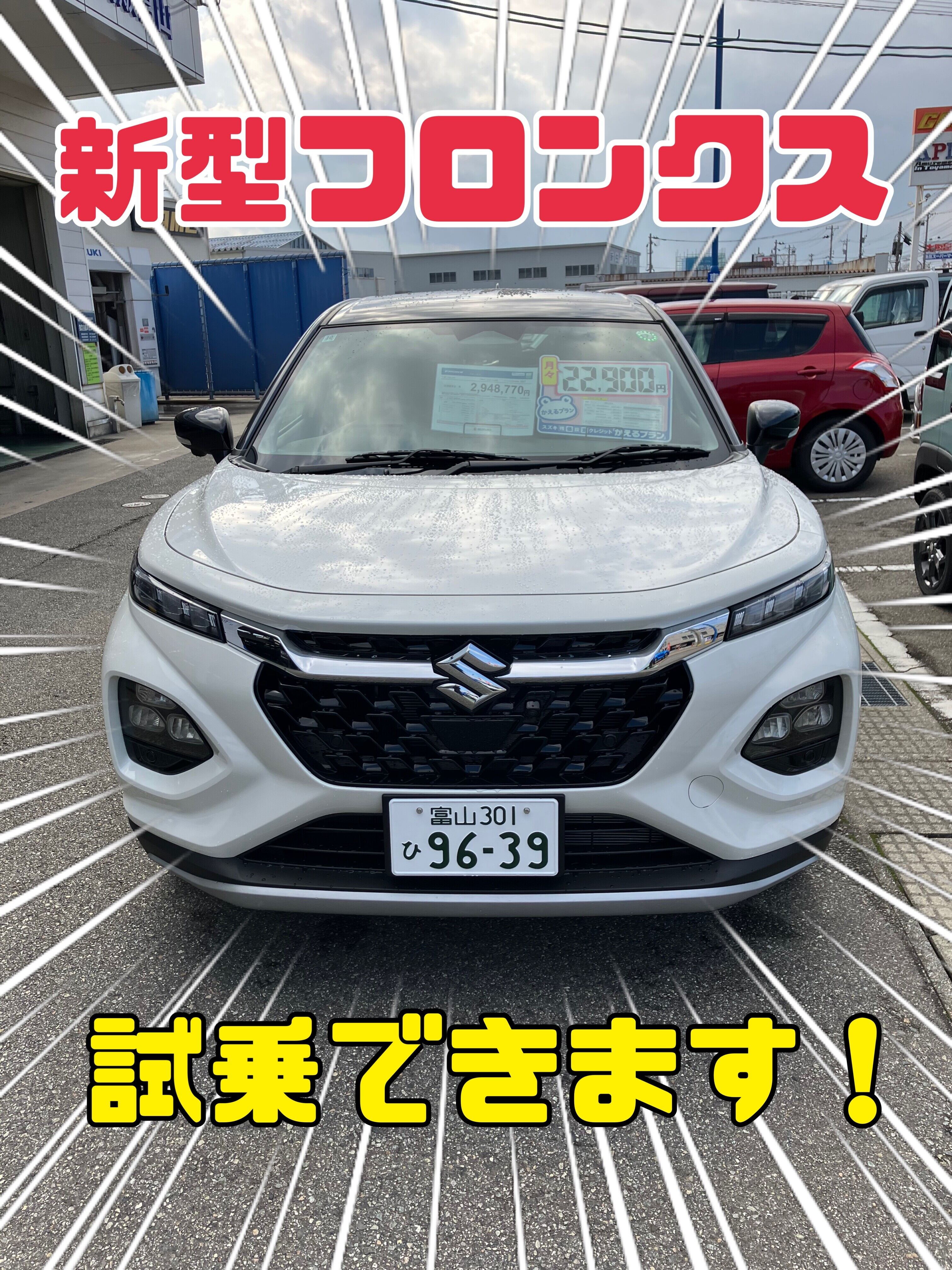 大好評の新型フロンクス当店展示車色アークティックホワイトパール ブラック2トーンルーフが