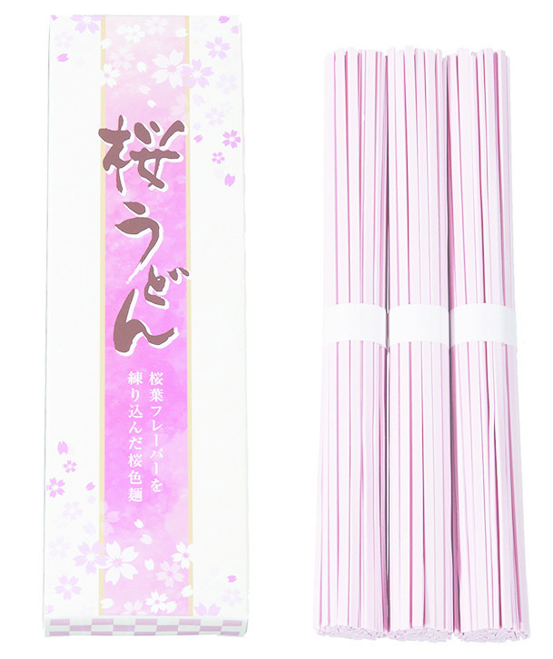 桜葉フレーバーを練り込んだ桜色麺!