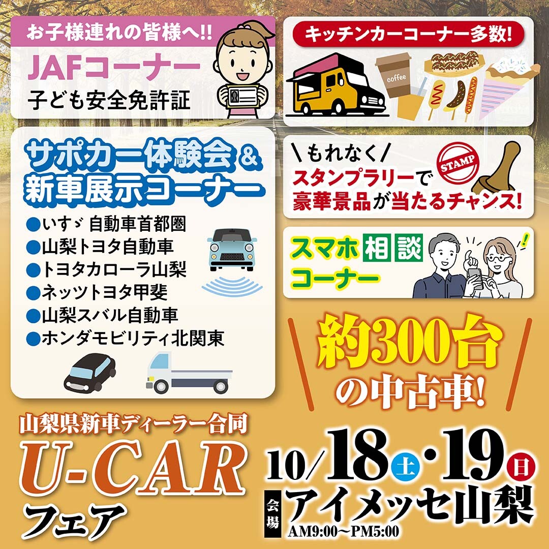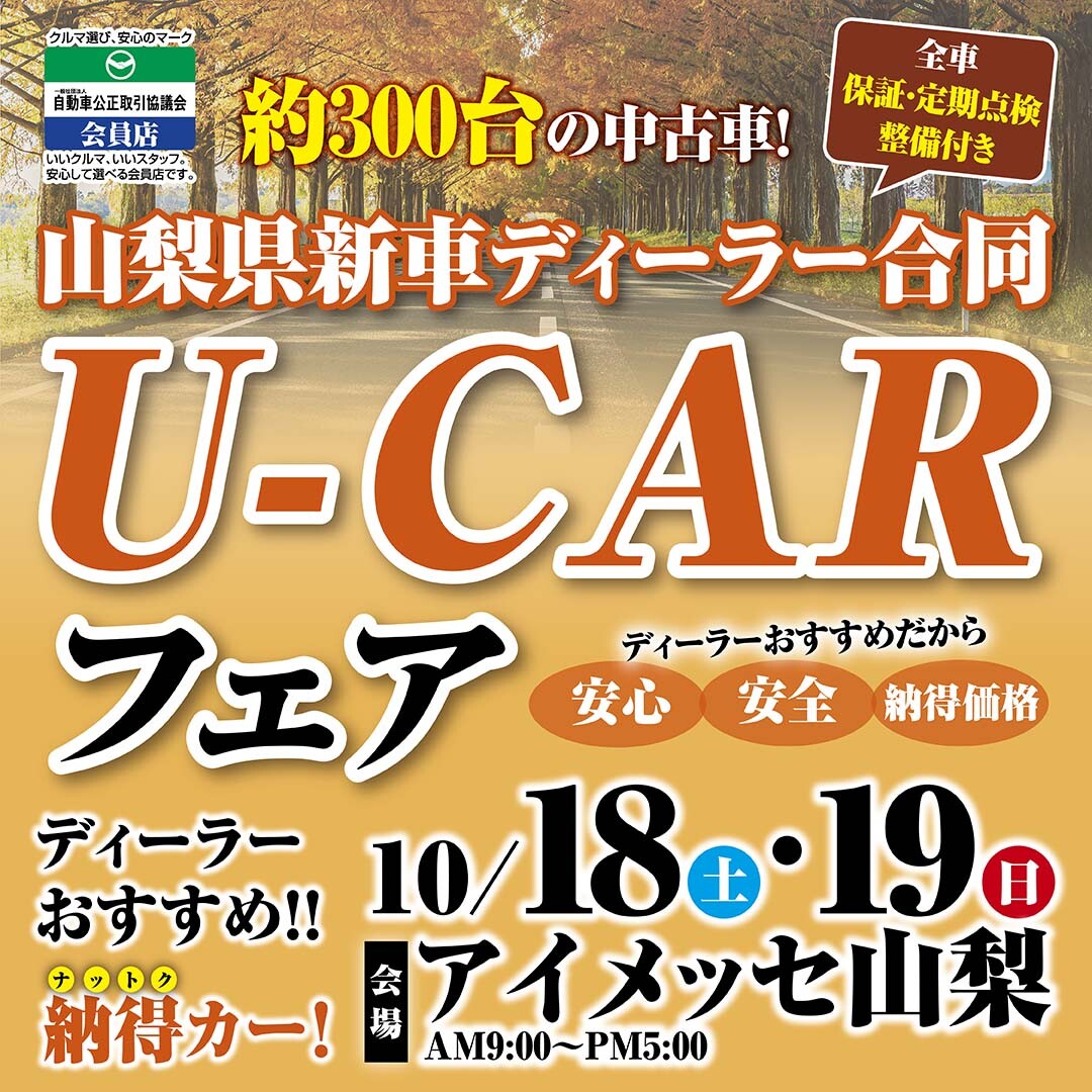 10/18(土),10/19(日)限定! アイメッセ山梨の「山梨県新車ディーラー合同U-CARフェア」に山梨スズキも出店いたします!!!