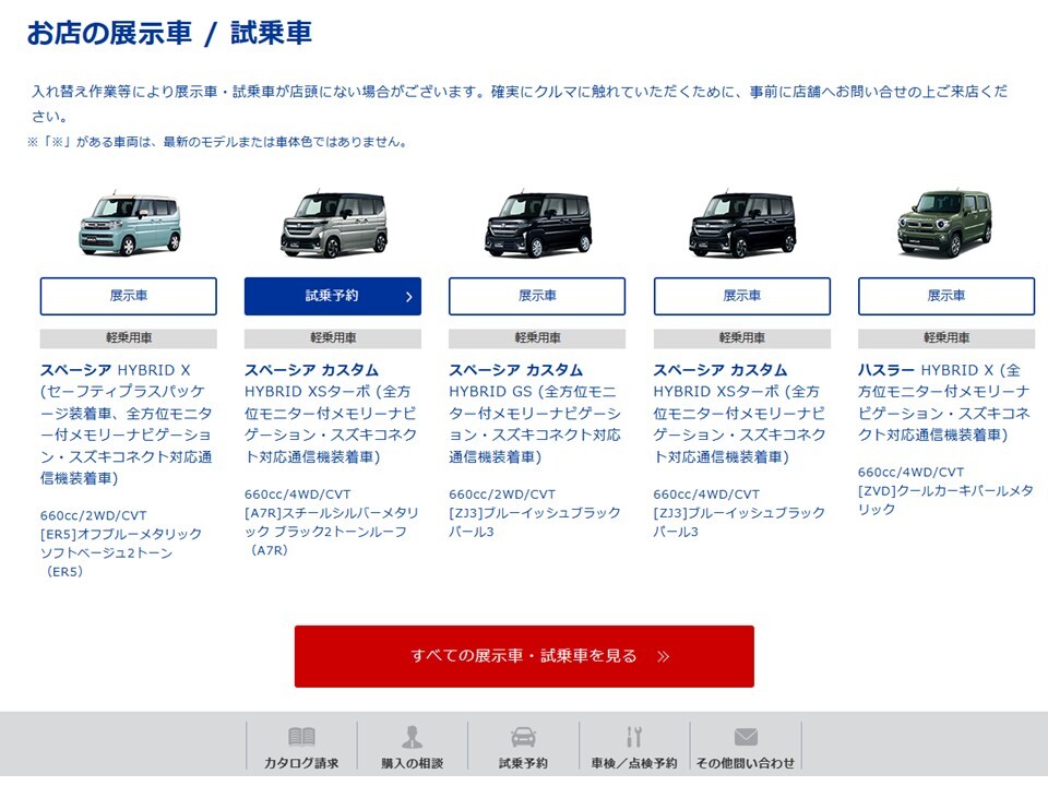 HPに試乗予約可能な車種リストがありますので気になる方は