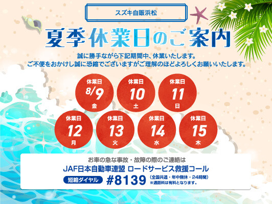 夏季休暇のご案内です