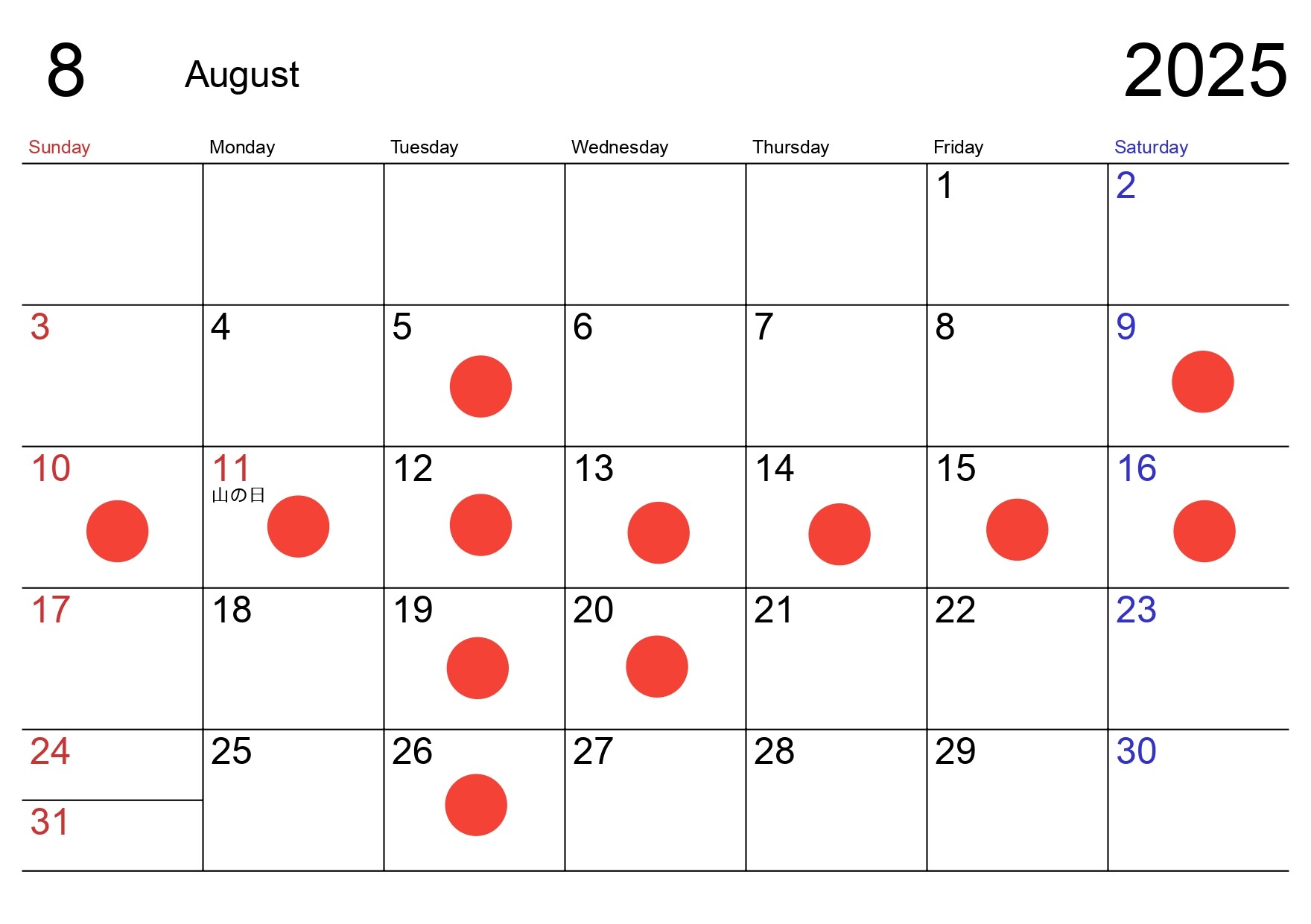8月の定休日のご案内です