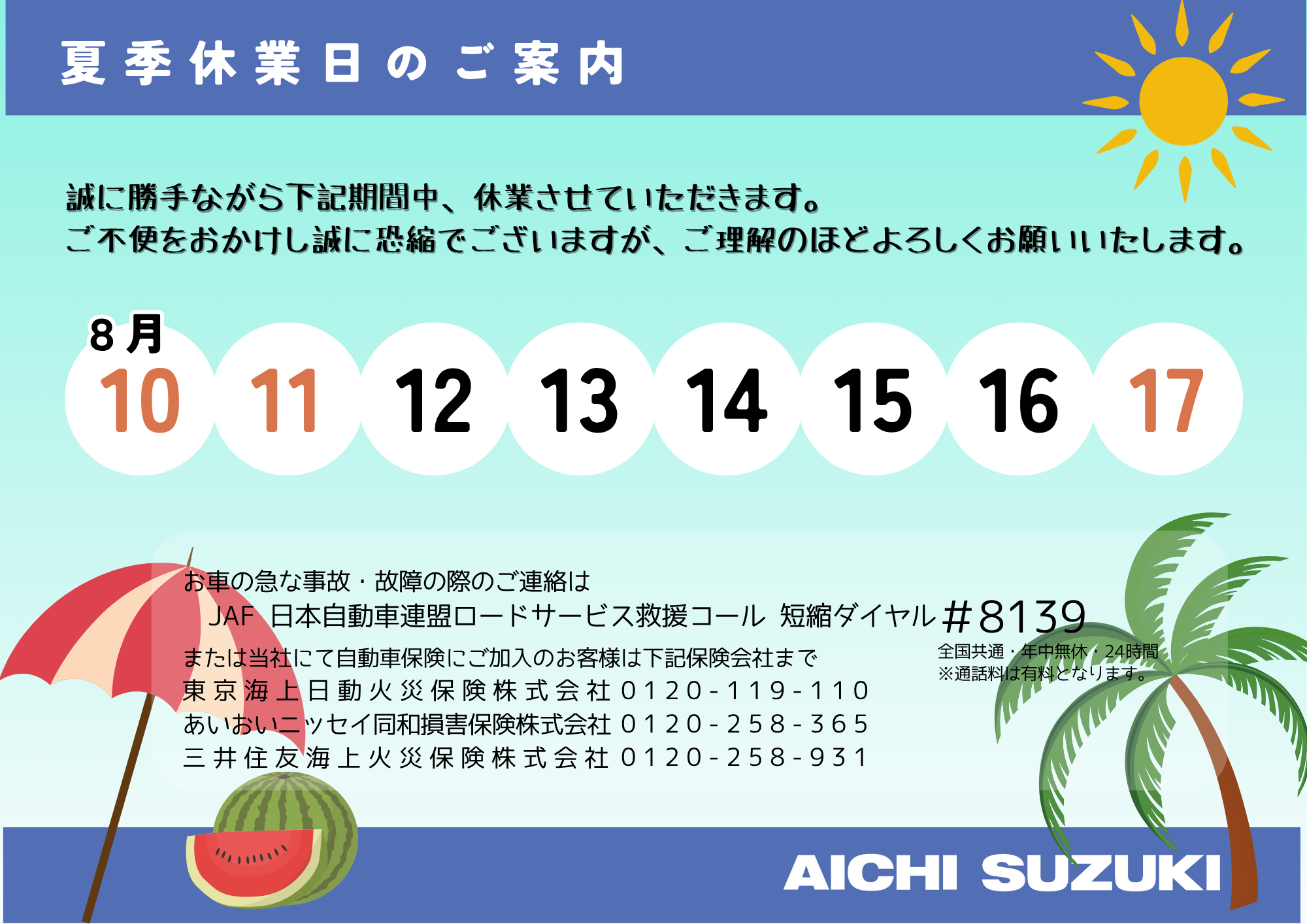 8月はお盆休みがございます