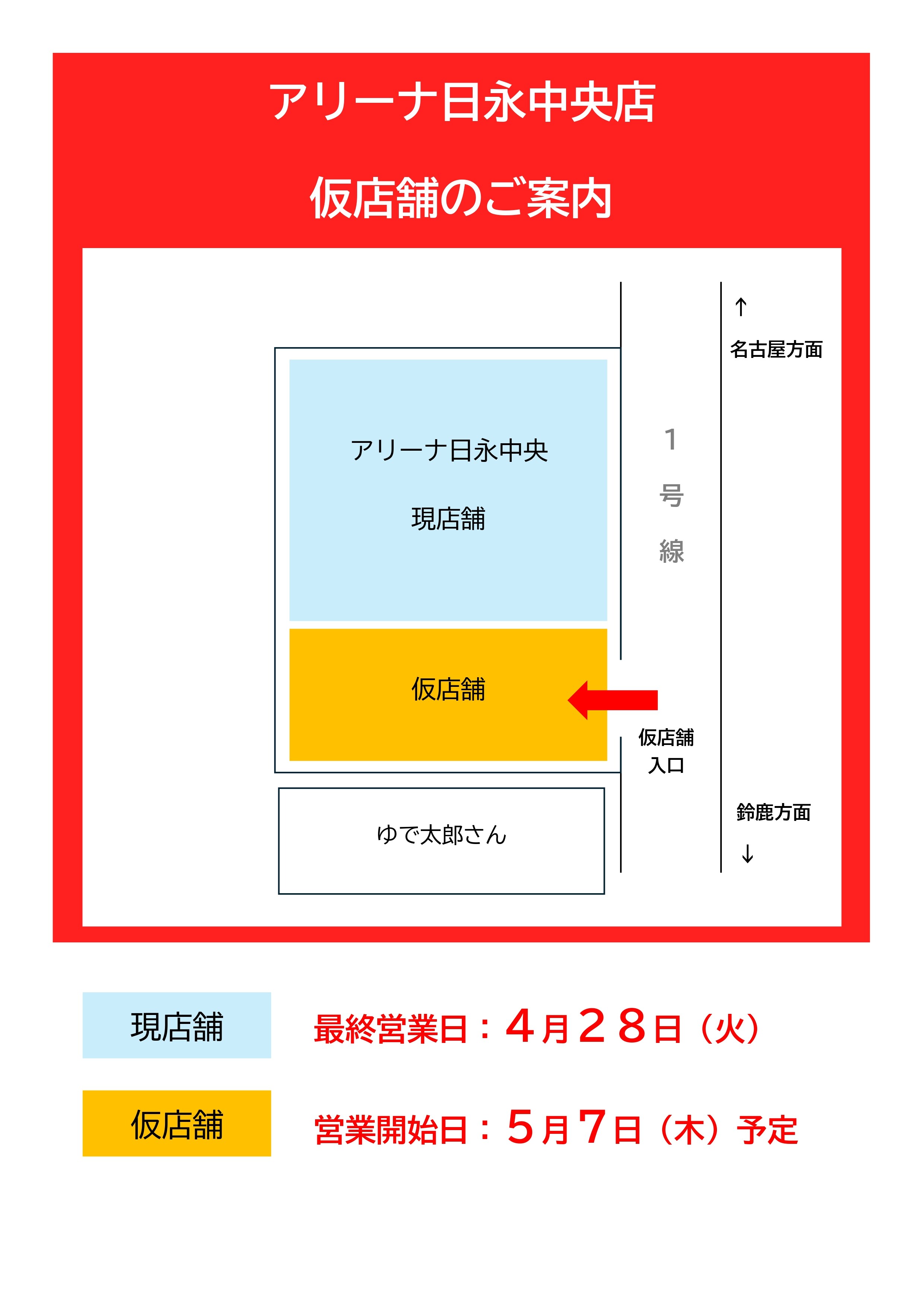 現店舗南側の仮店舗にて