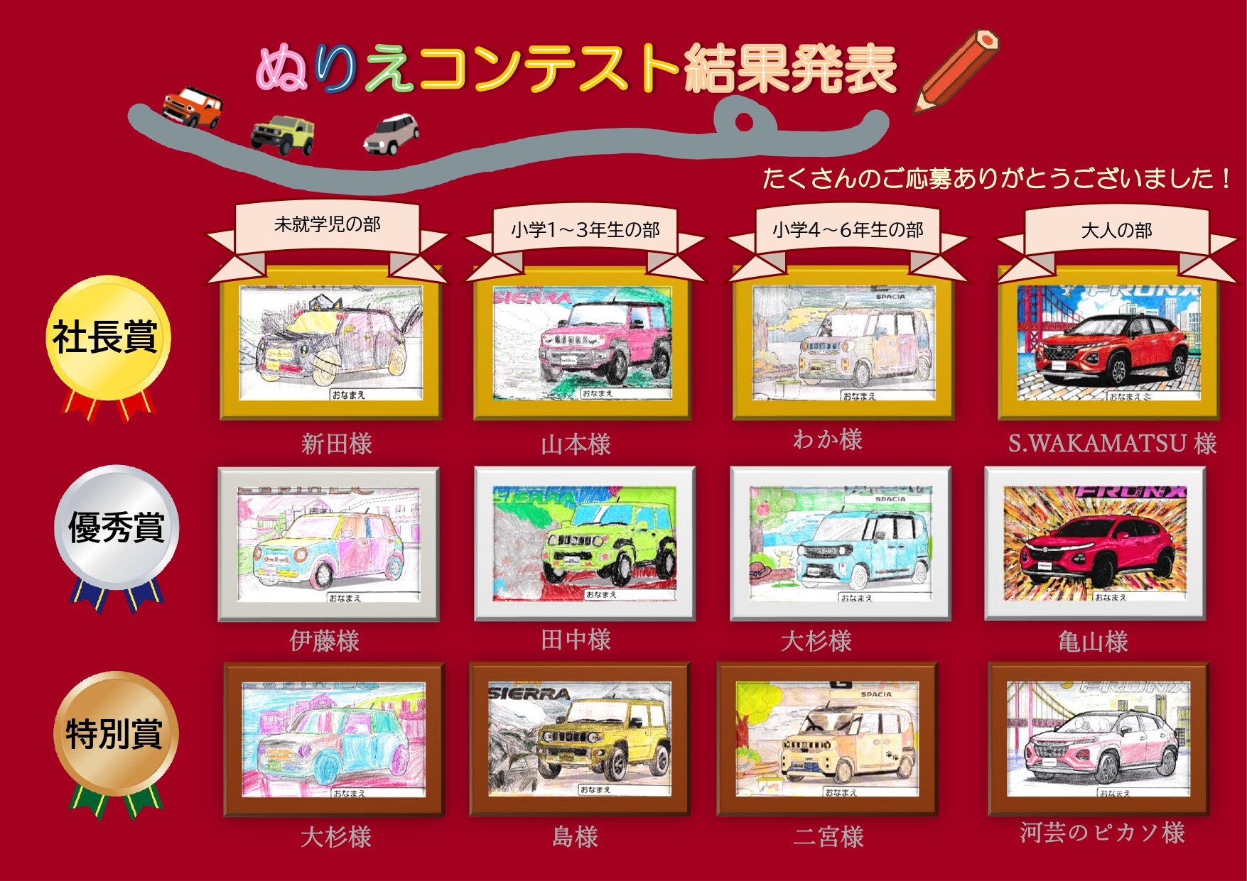 ぬりえコンテストたくさんのご応募ありがとうございました!