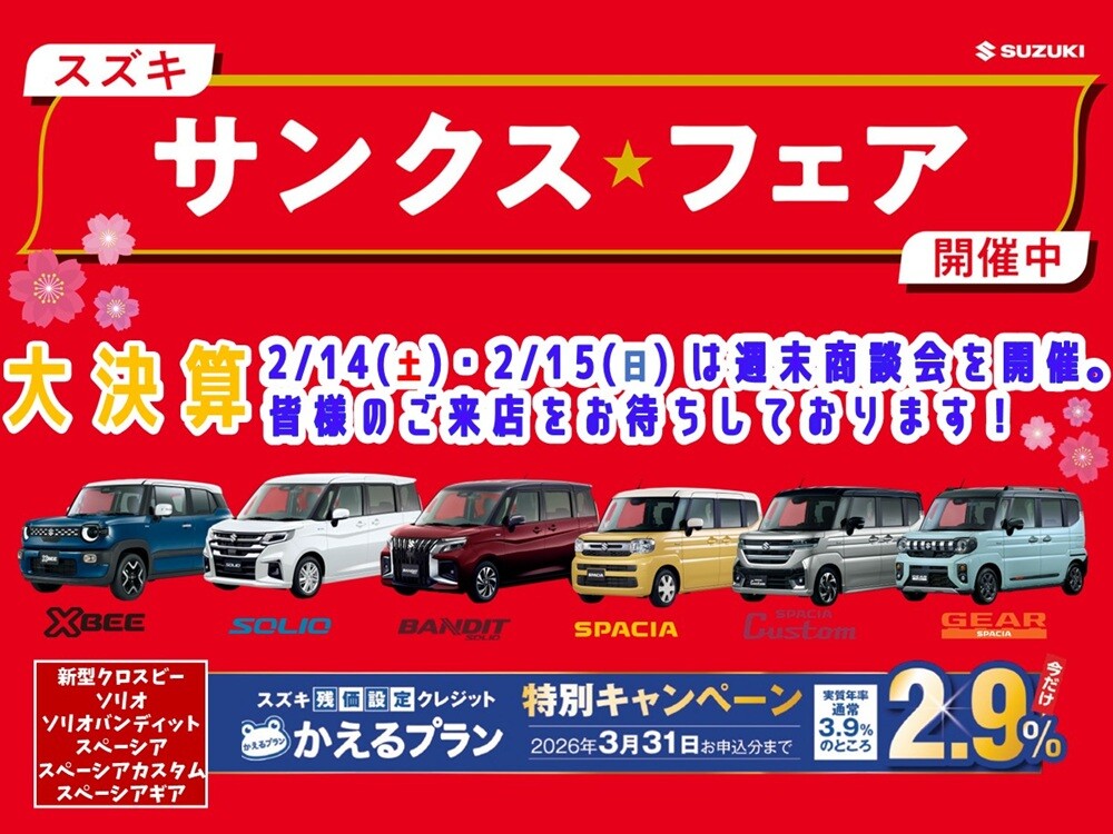 スズキでは軽自動車から普通車までお客様のニーズに合わせておクルマのご準備がございます。