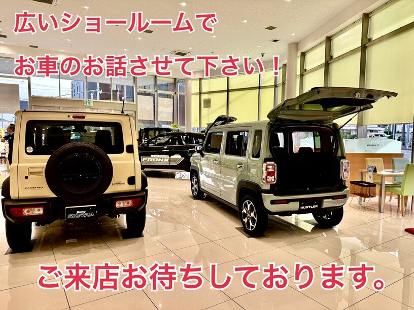 広いショールームで新車のお話