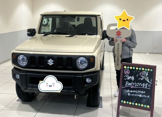 納車ギャラリー 2025.12.25 ジムニーご納車させていただきました!! 愛車 ジムニー お客様 S様 グレード XC ボディーカラー シフォンアイボリーメタリック ジムニー納車しましたのでご紹介いたします S 様 この度は誠におめでとうございます まえからずっとジムニーに乗りたくって憧れの車でしたと 本当にありがとうございます 今後ともよろしくお願いいたします