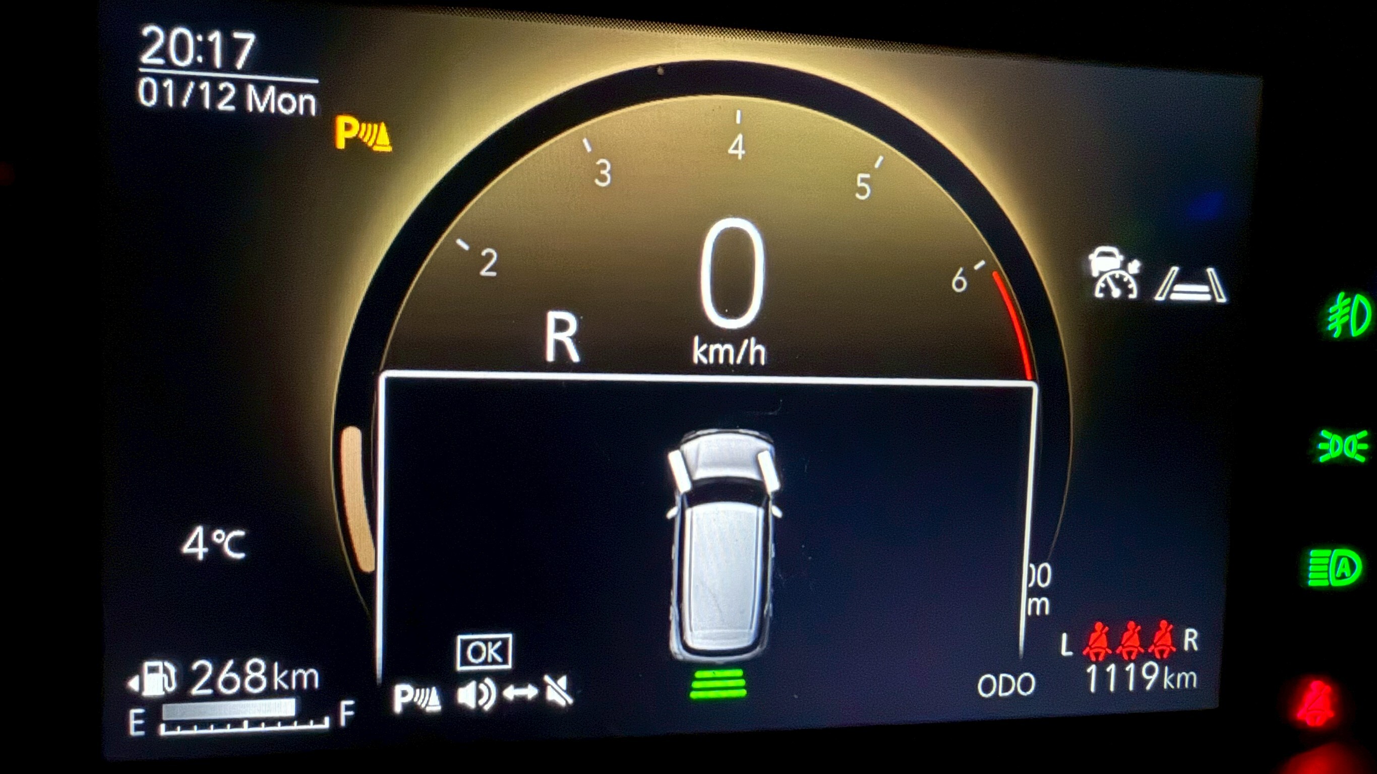 バックで駐車するとき、このメーター内のクロスビーを見てみると